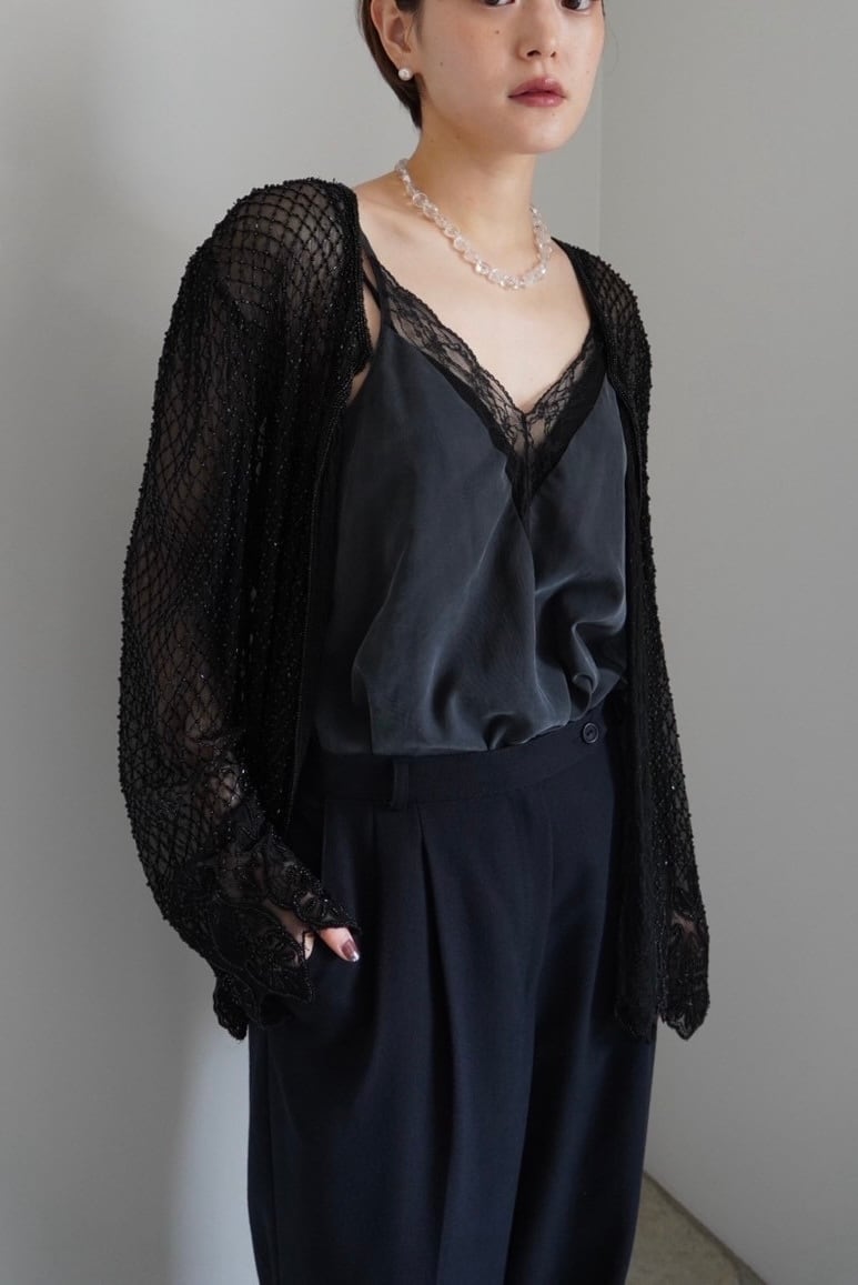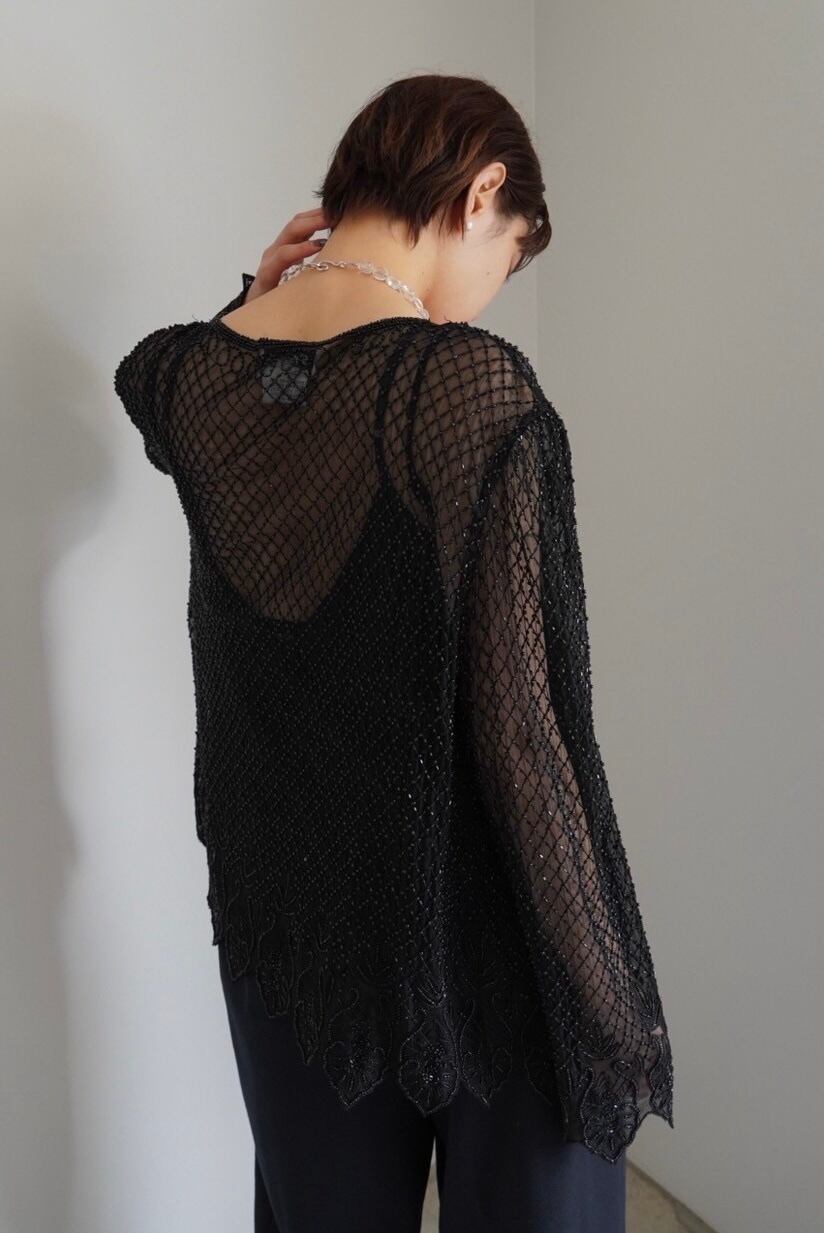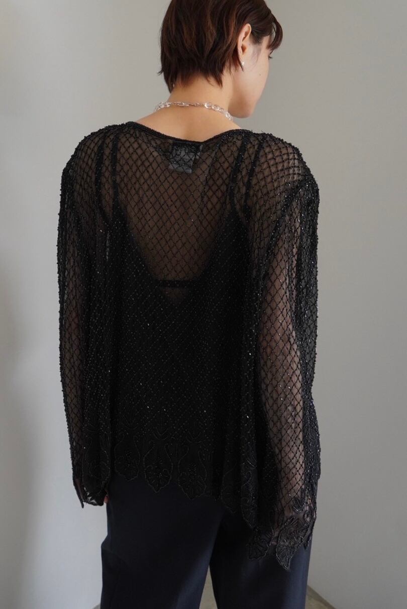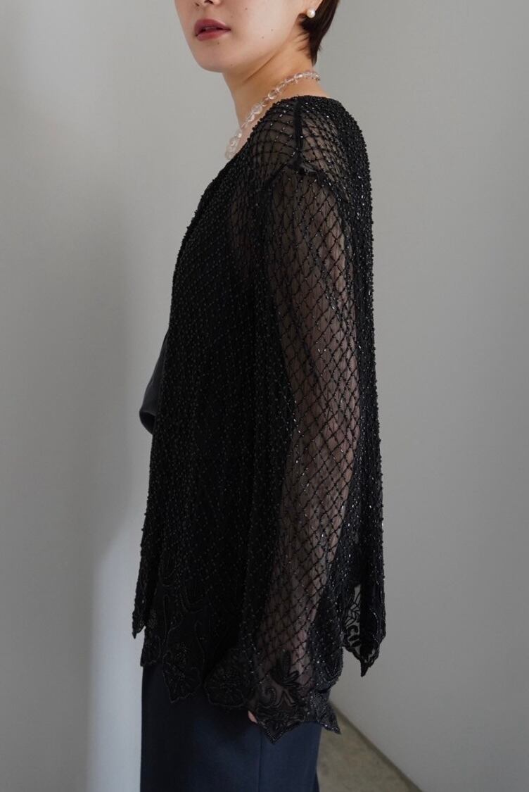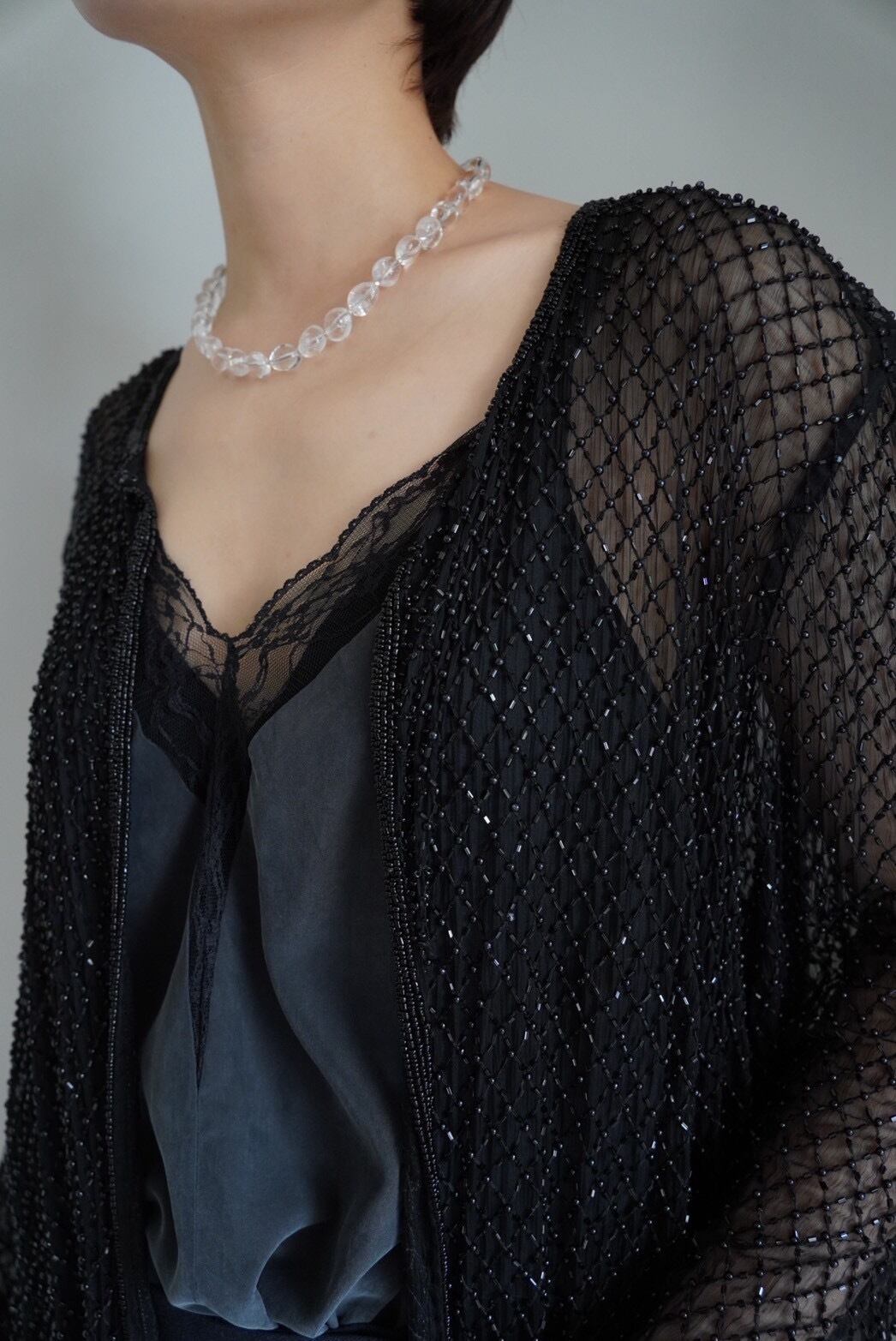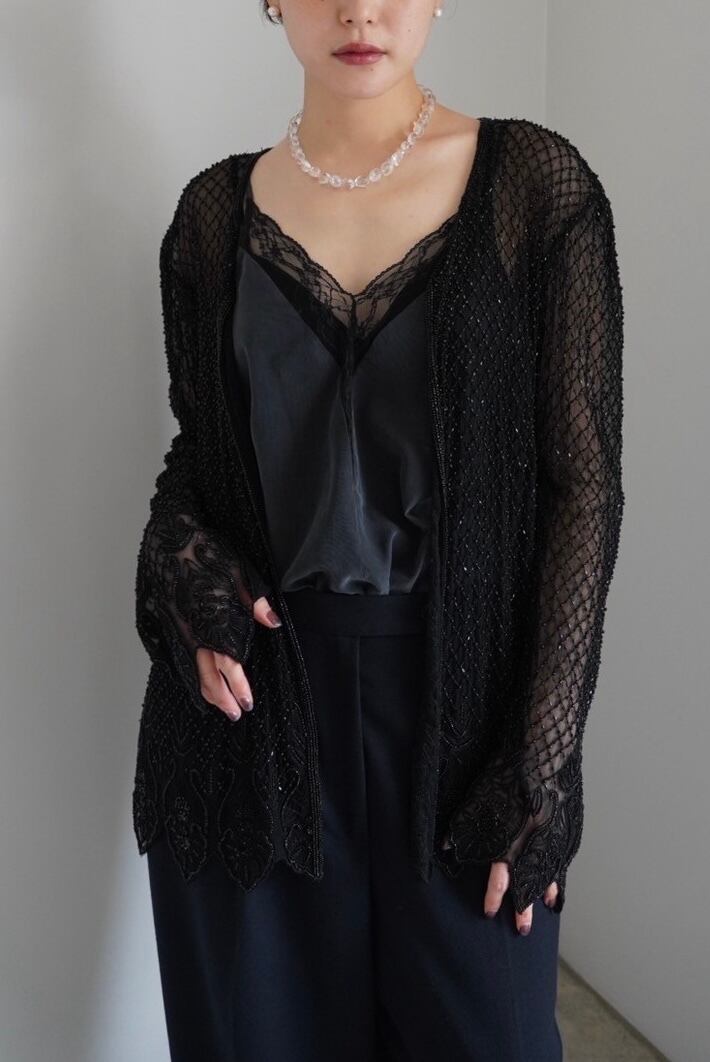 細かなビーズが全体に縫い付けられたカーディガン。かなり手の込まれた1着です。