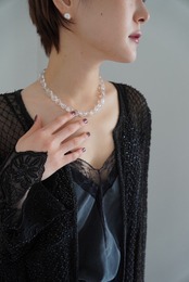 落ち感のあるシルクの素材が上品な印象に仕上がります。裾のレースのようなデザインもポイント◎