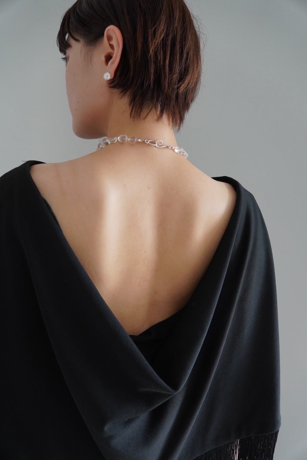 フロントに施されたフリンジがシンプルなデザインにアクセントをプラスしてくれています。
