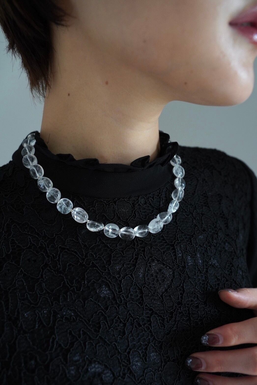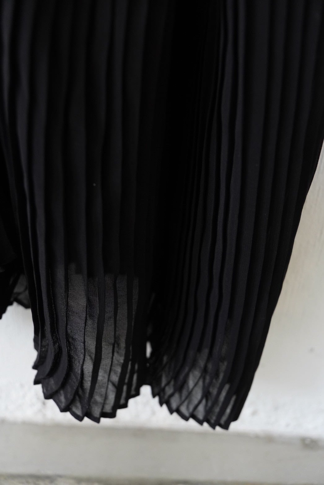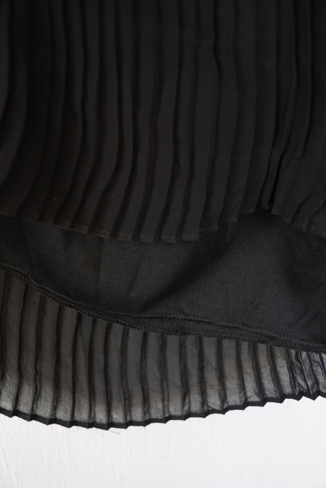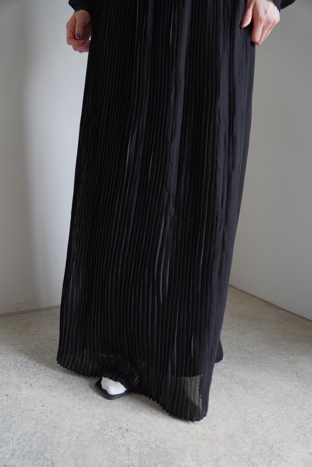 上品なレース生地と動くたびに柔らかく流れるプリーツシルエットがエレガントな印象です。