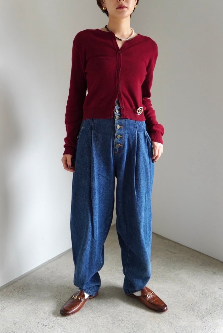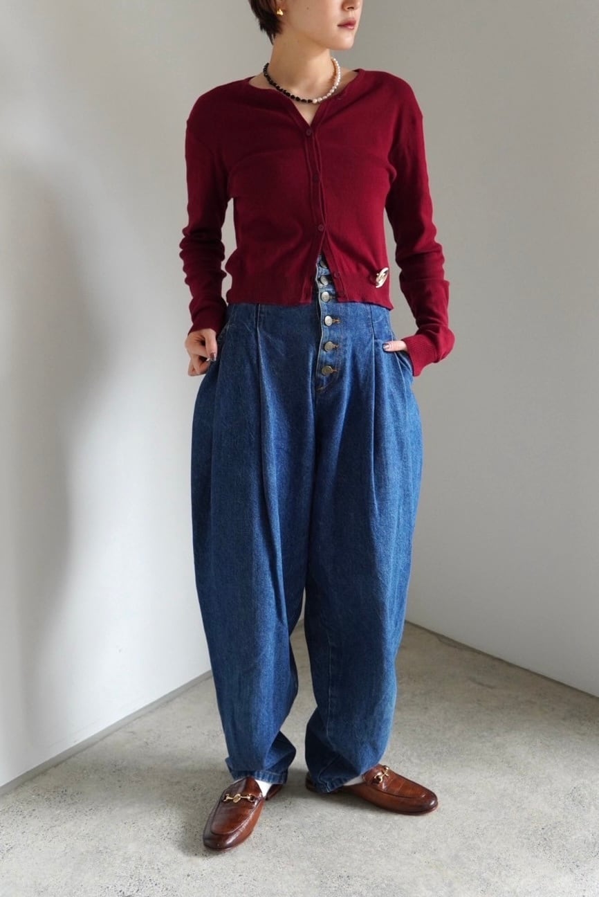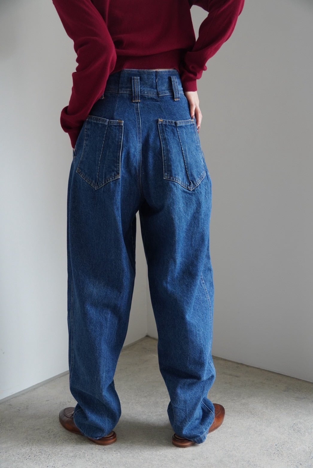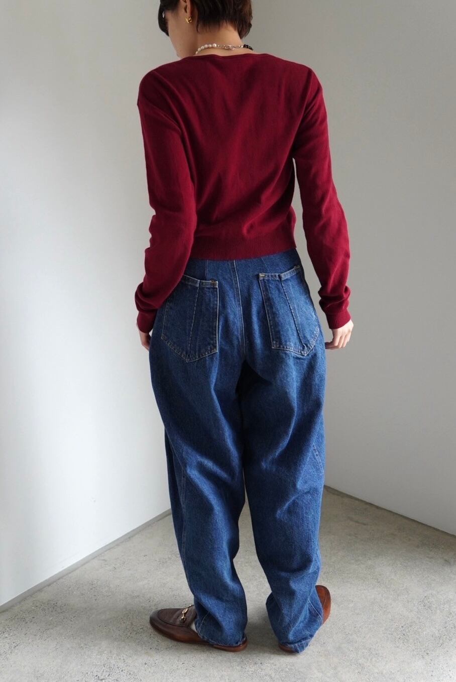 シンプルながらも洗練された印象のデニムパンツ。テーパードのかかったシルエットです。