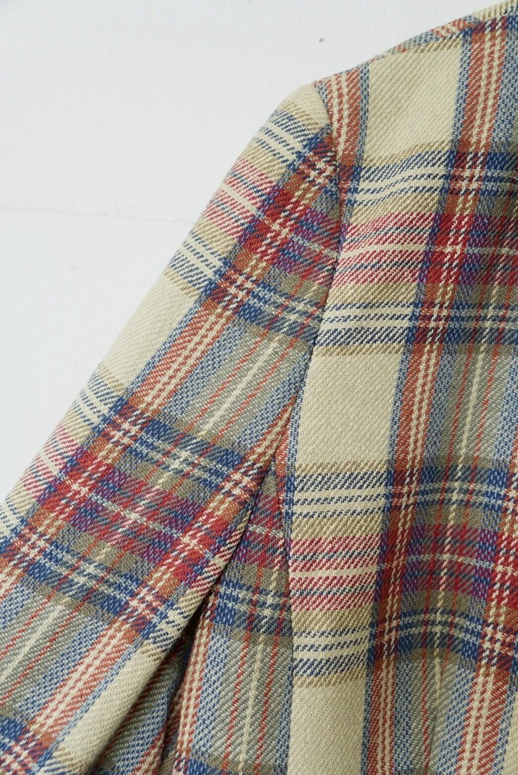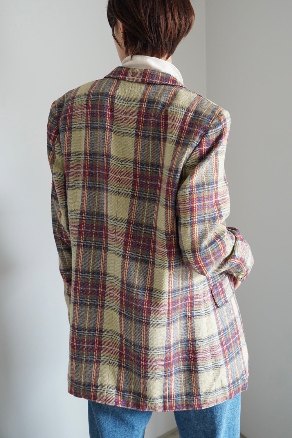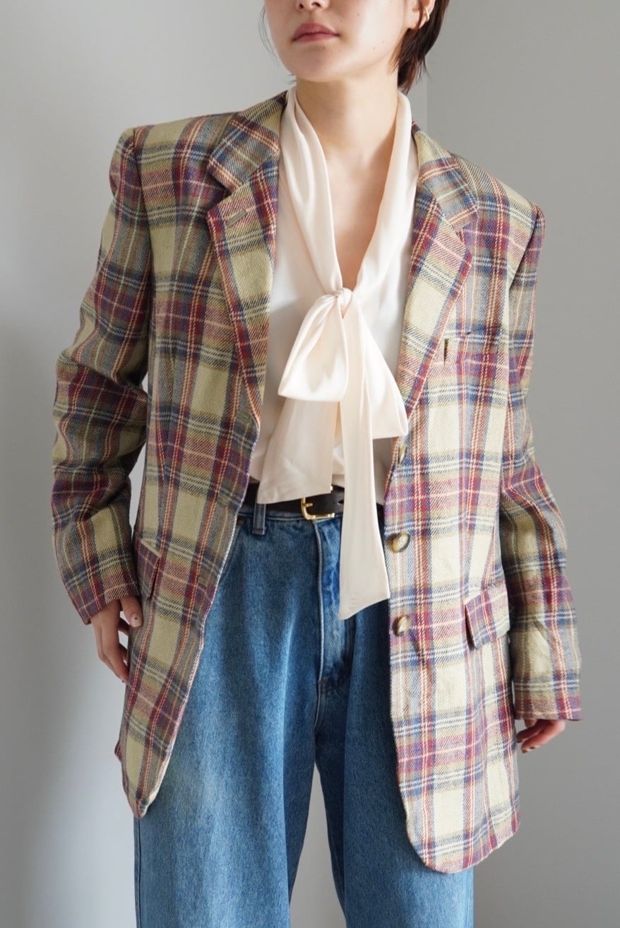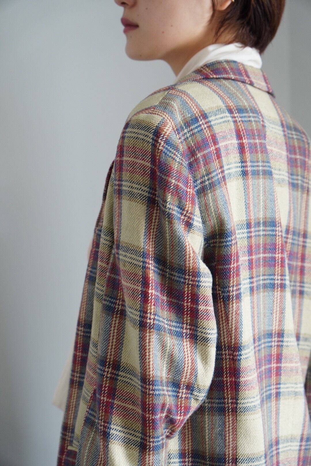 上品なカラーリングのマルチチェックジャケット。