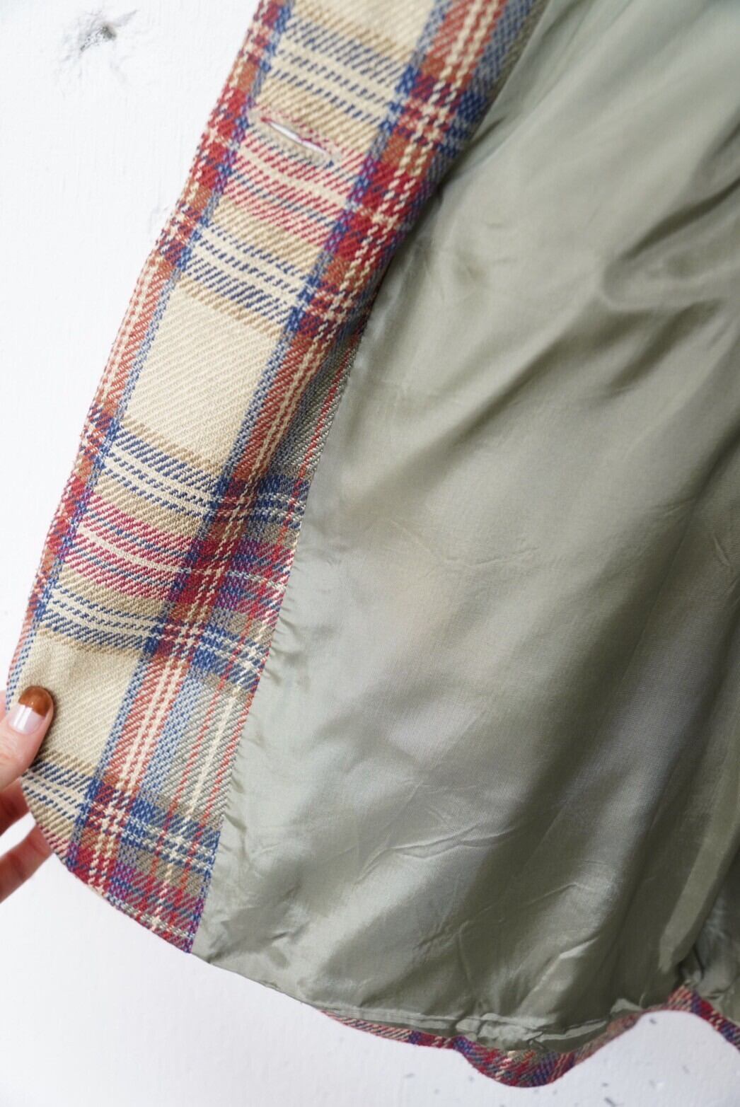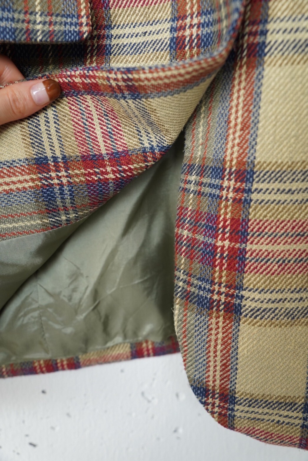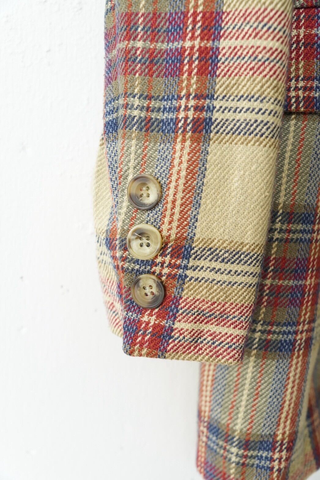 上品なカラーリングのマルチチェックジャケット。