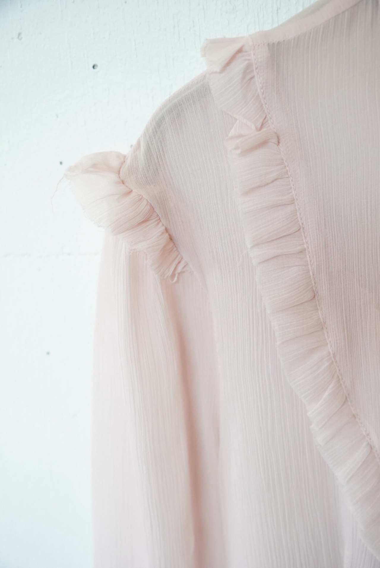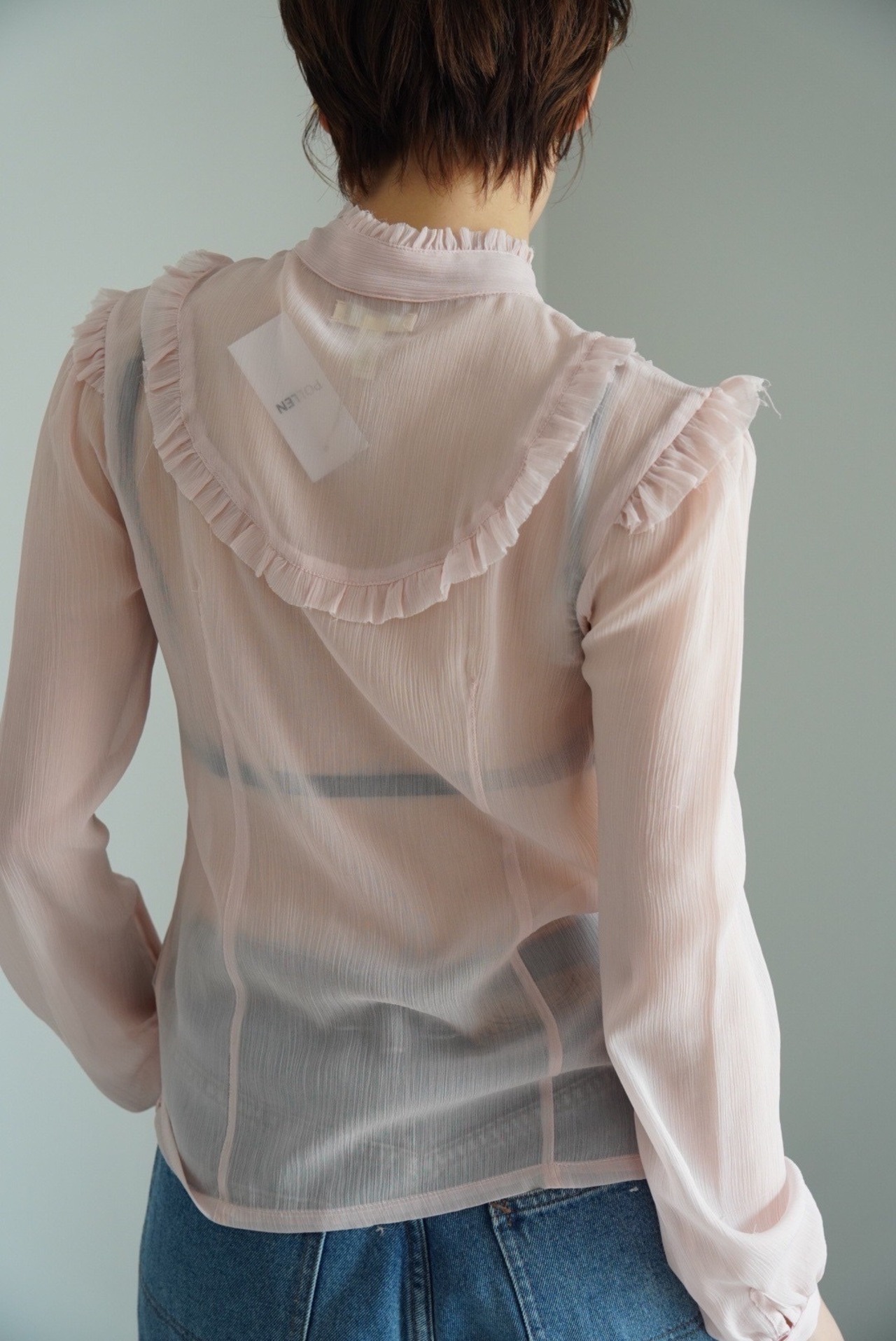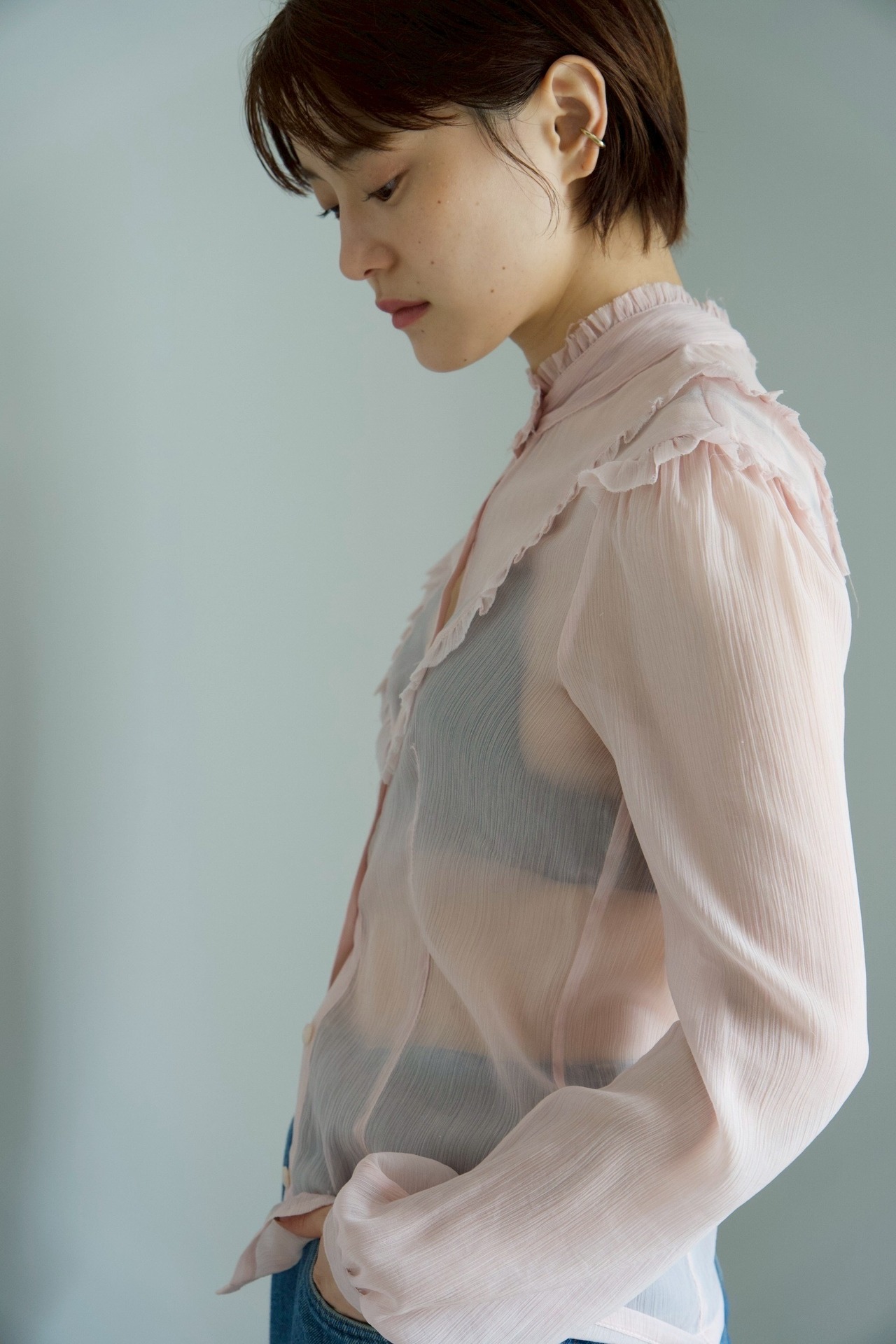 程良い透け感とフェミニンなフリルデザインが女性らしいブラウス。