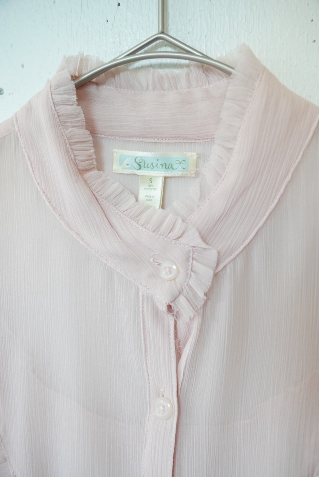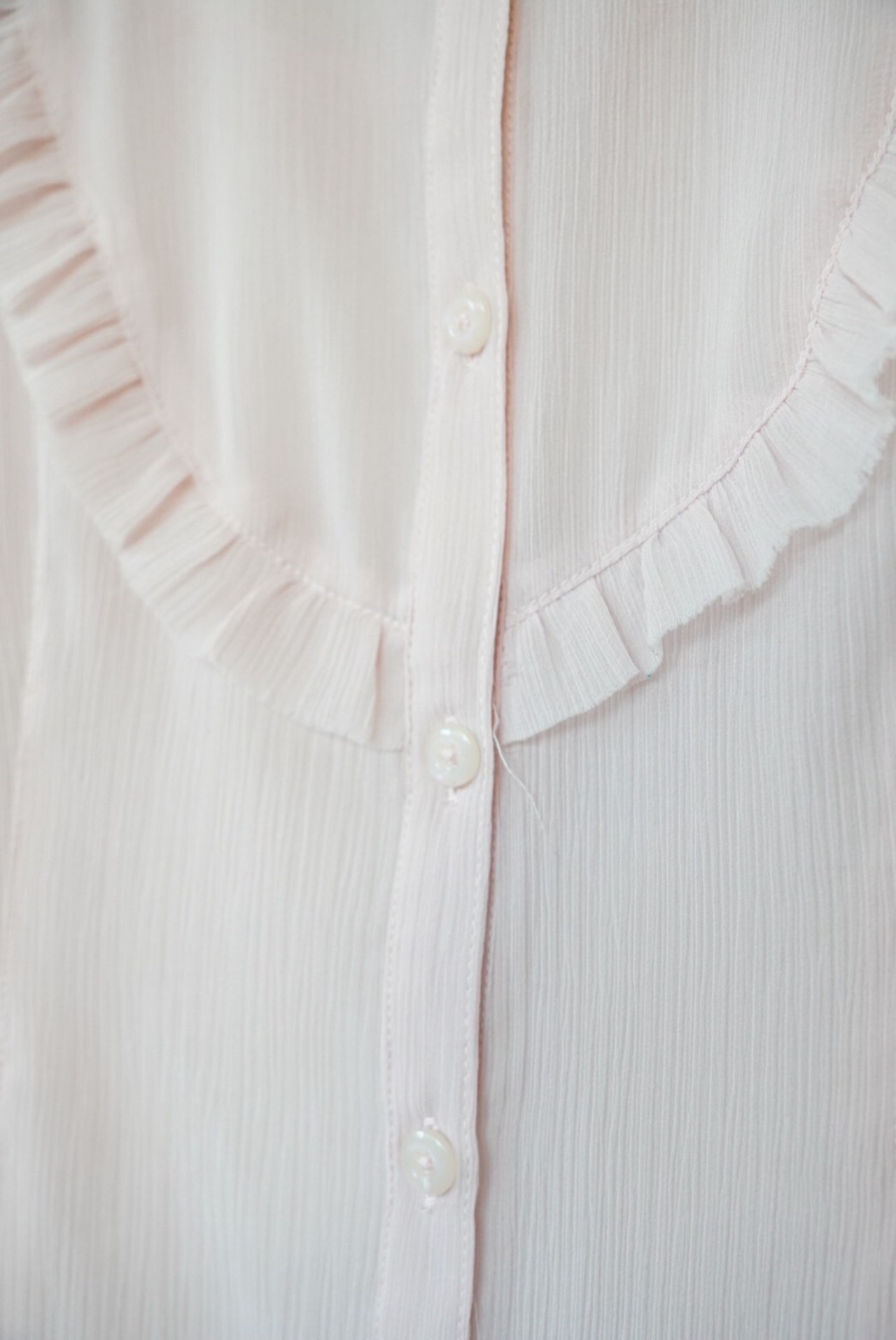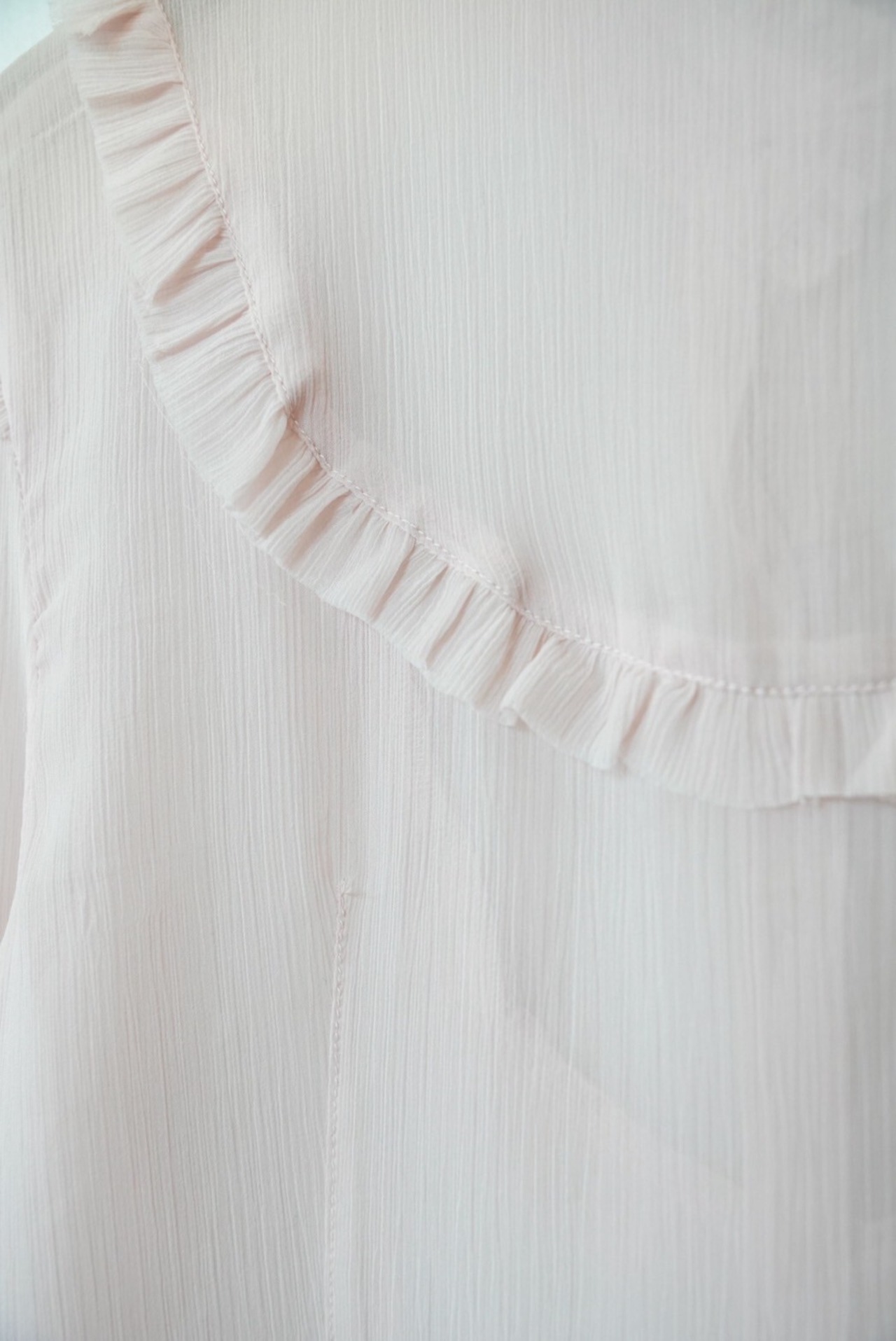 程良い透け感とフェミニンなフリルデザインが女性らしいブラウス。