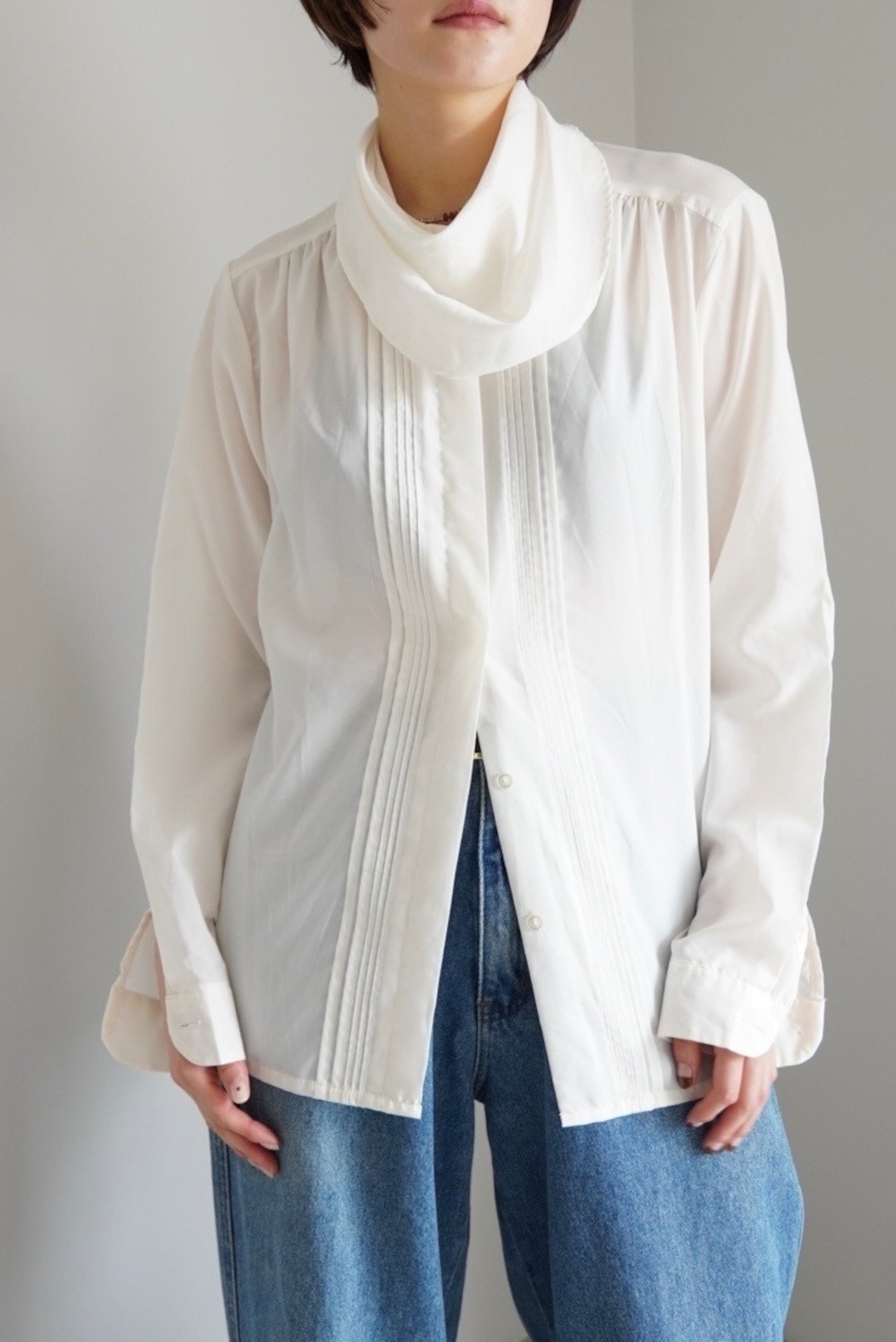 タック入りのラウンドネックが大人っぽい印象のブラウス。