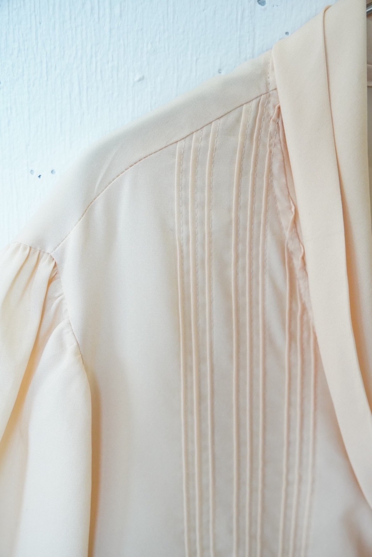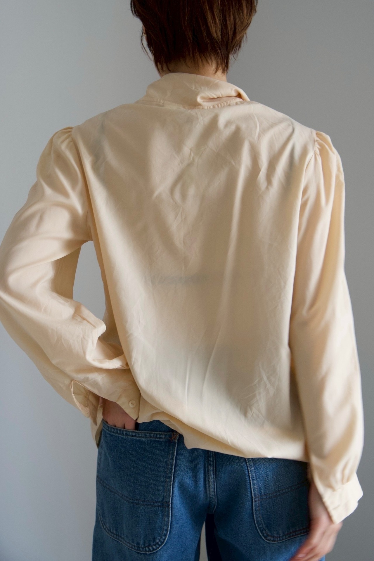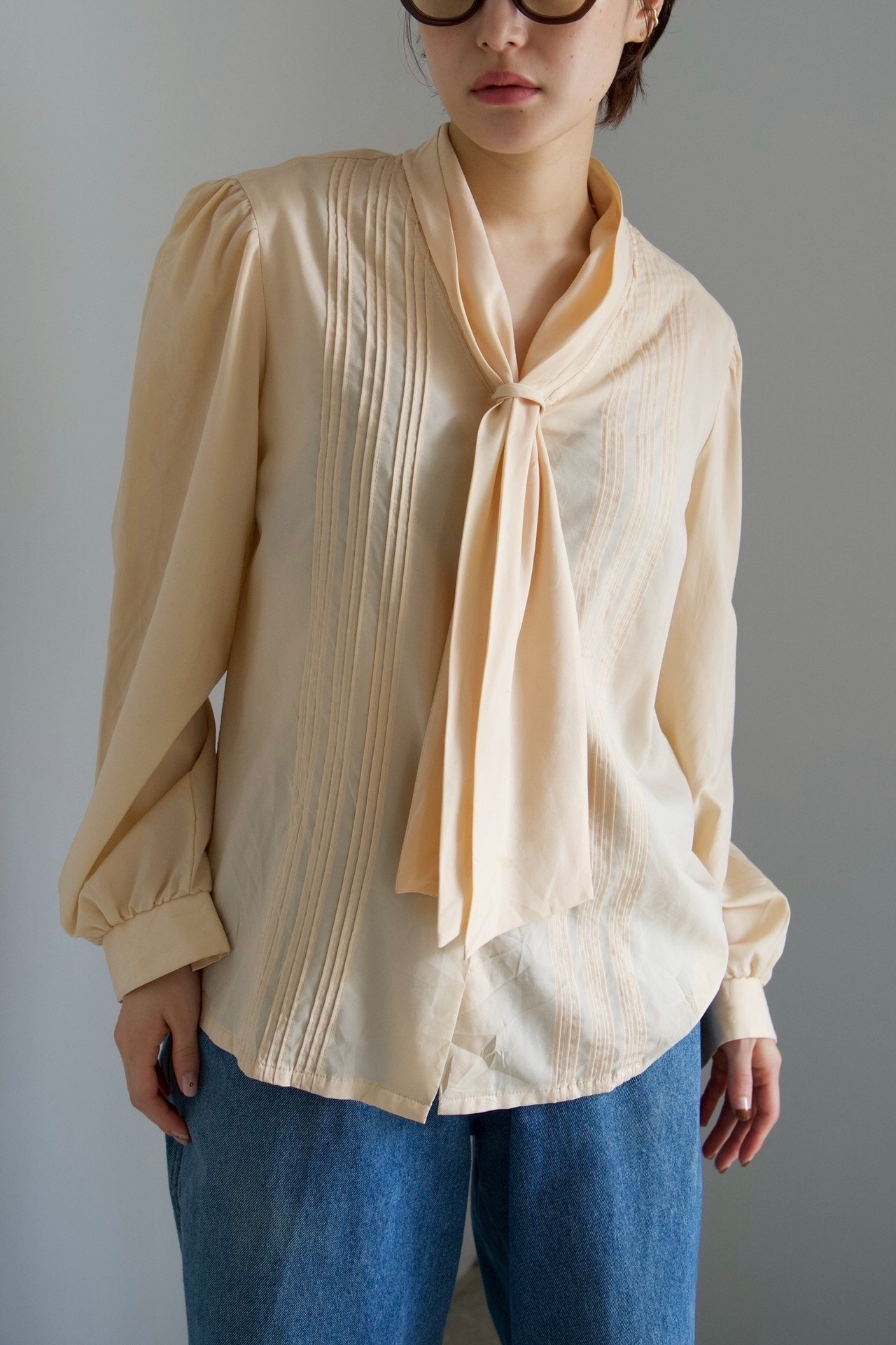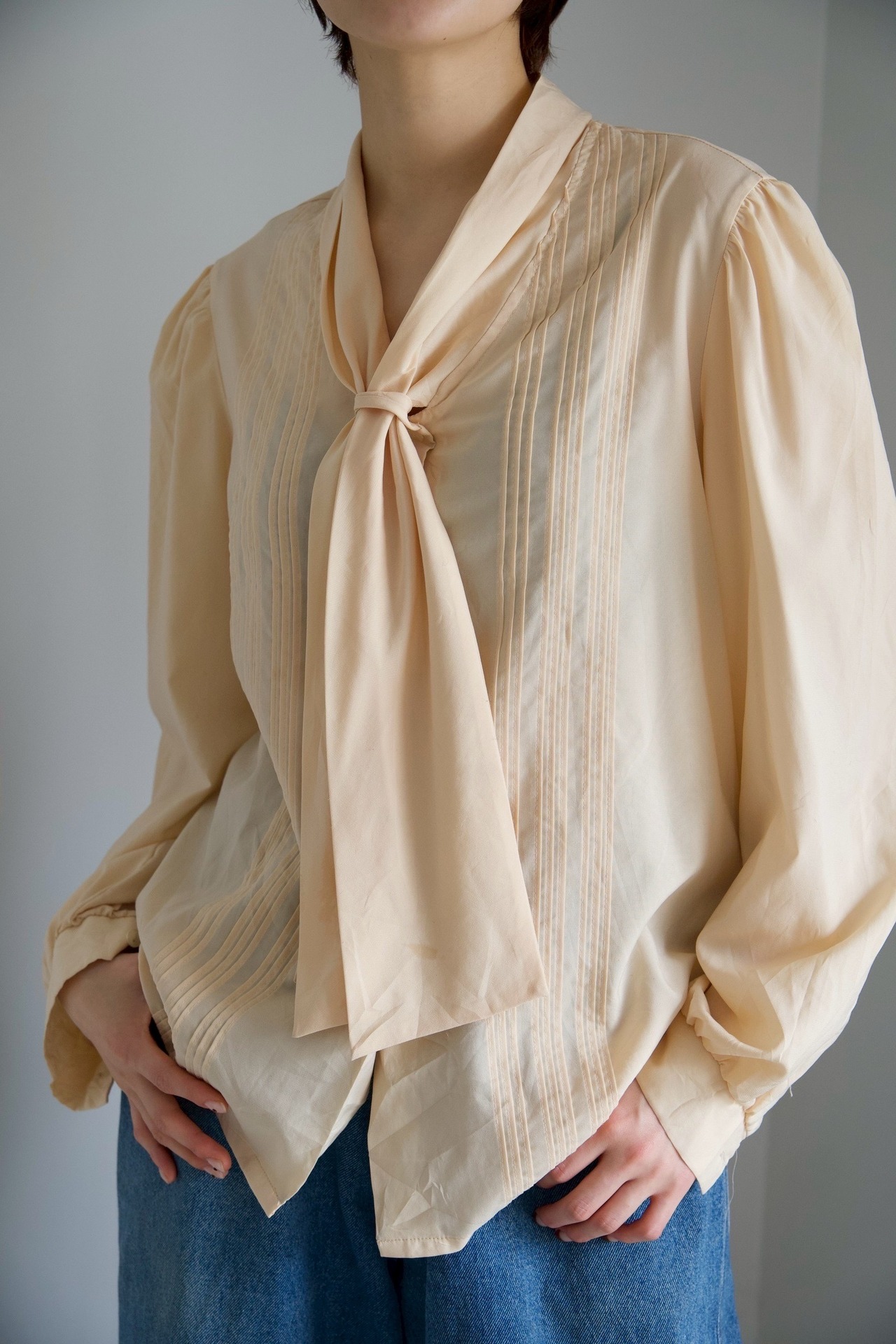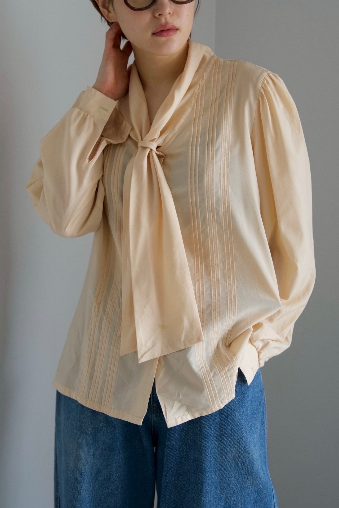 リボンタイとフロントデザインが華やかさを添えるブラウス。