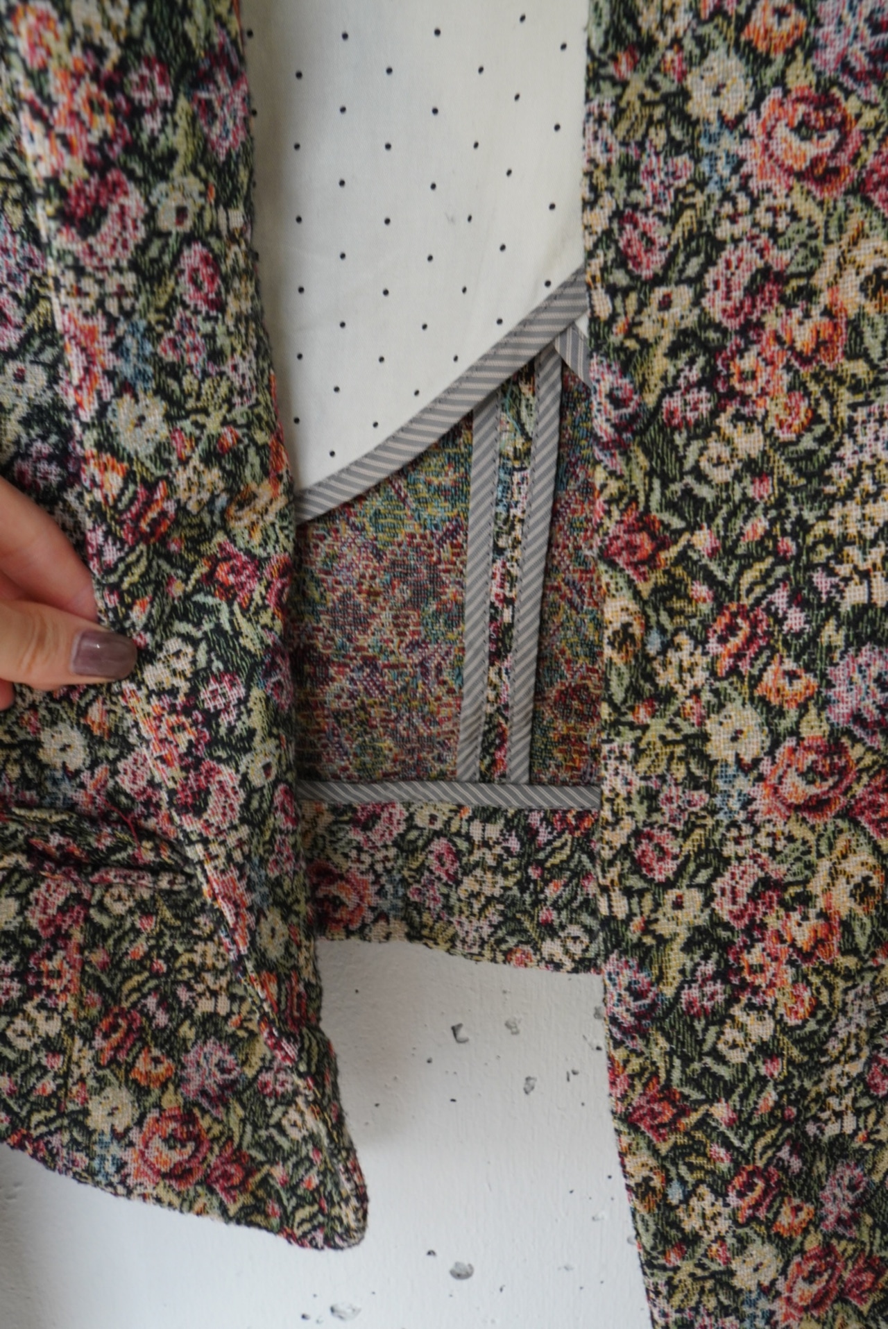 ヴィンテージ感漂う小花柄が、羽織るだけでコーデをグッと華やかに仕上げてくれます。