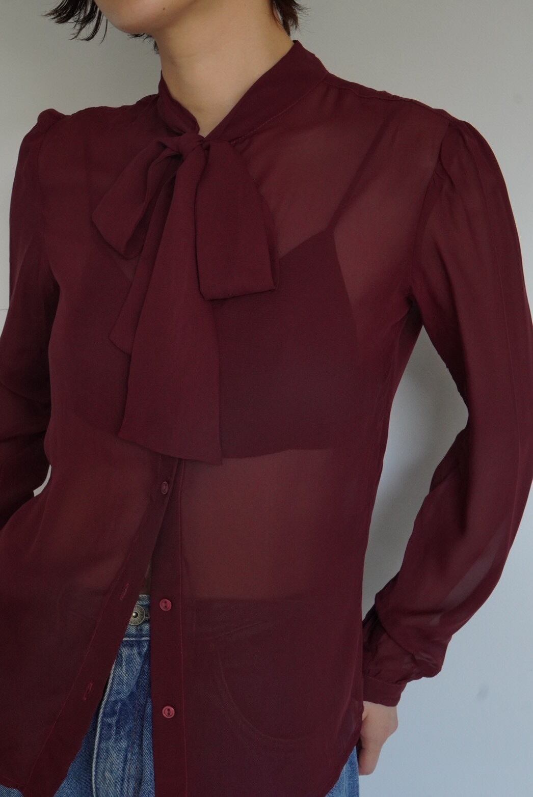 上品な透け感のあるデザインと、タイネックデザインがスタイリングにさりげないアクセントを加えてくれます。