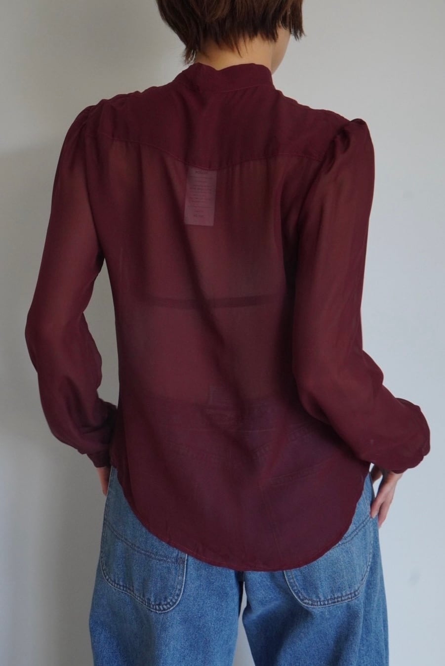 シーズンムードを高めてくれるボルドーカラーシャツ。