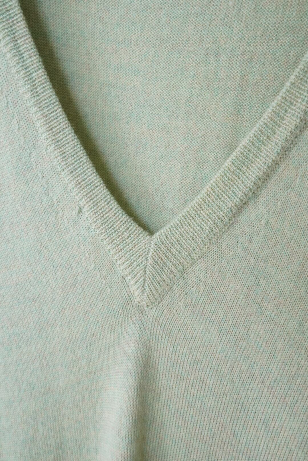 深めのVネックに、身幅をゆったりさせた抜け感のあるデザインもポイントです。