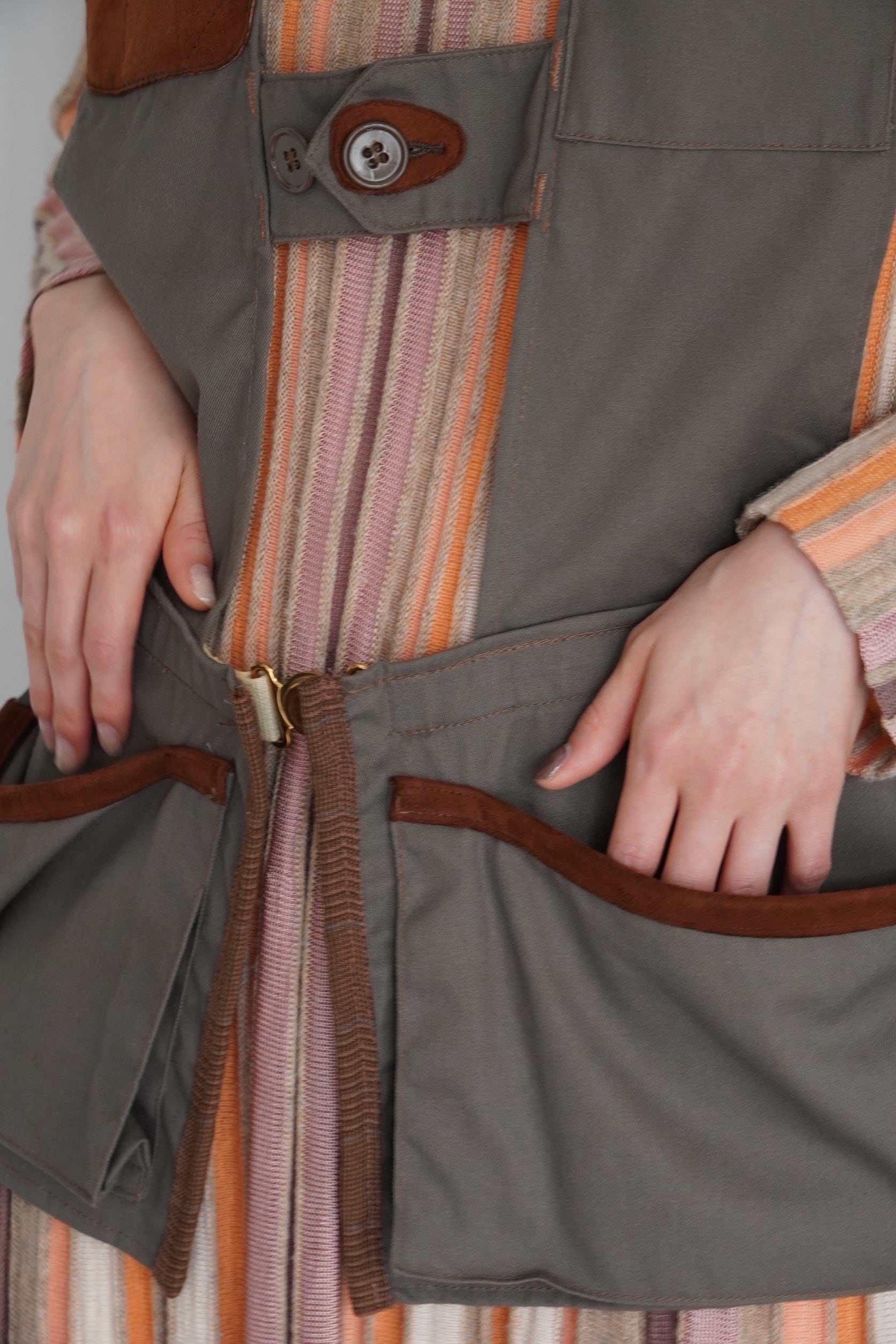 ガンパッドや大きめのポケットが高いデザイン性感じられるハンティングジャケット。