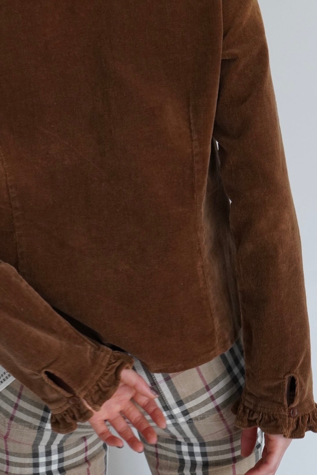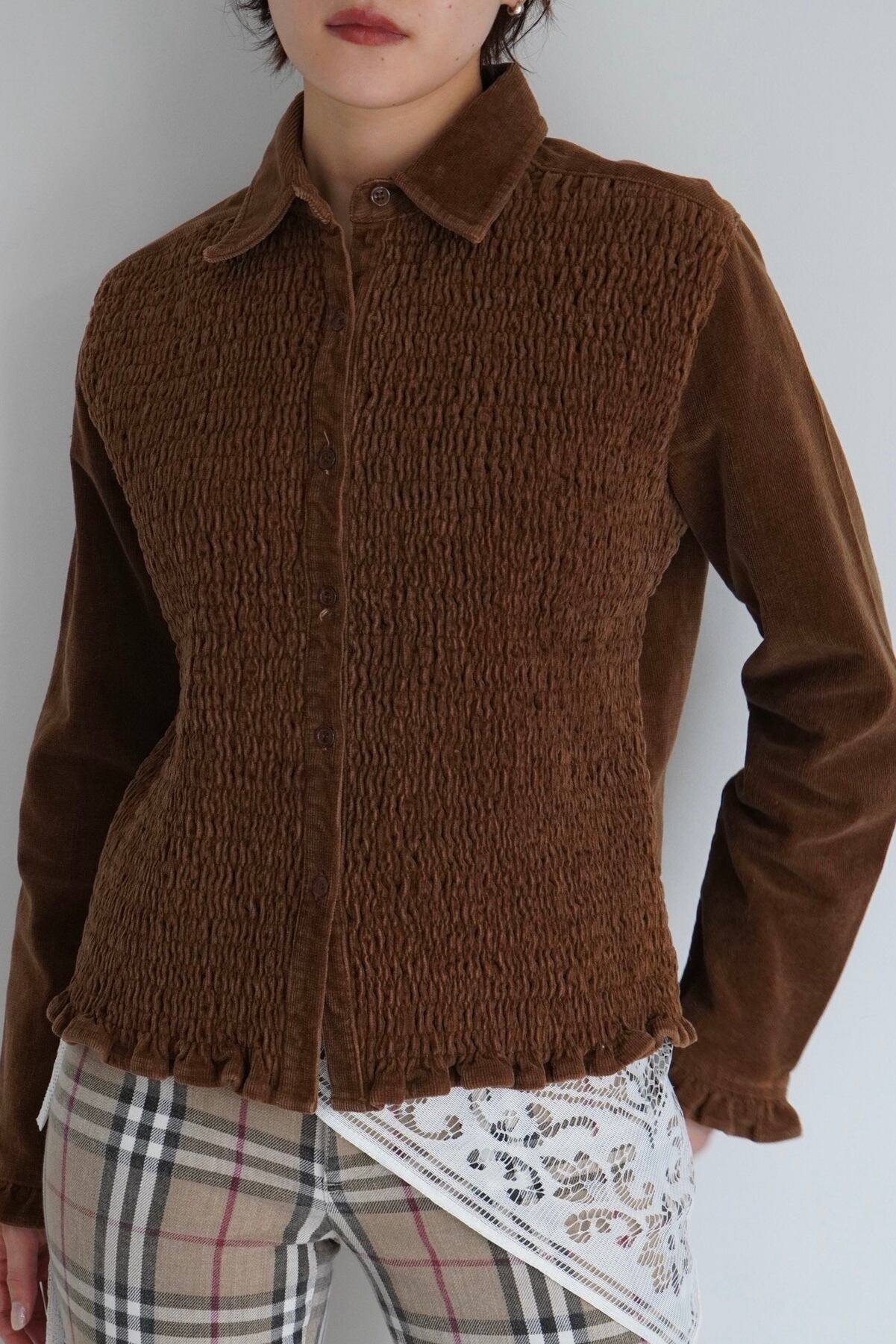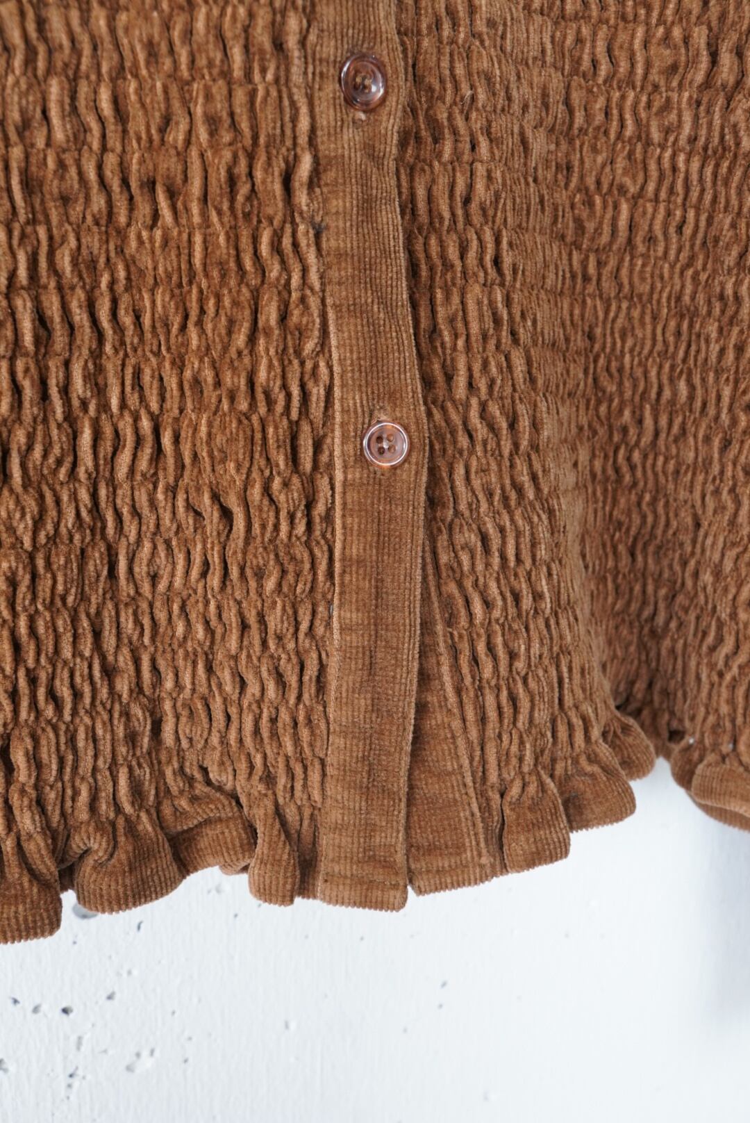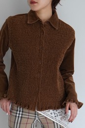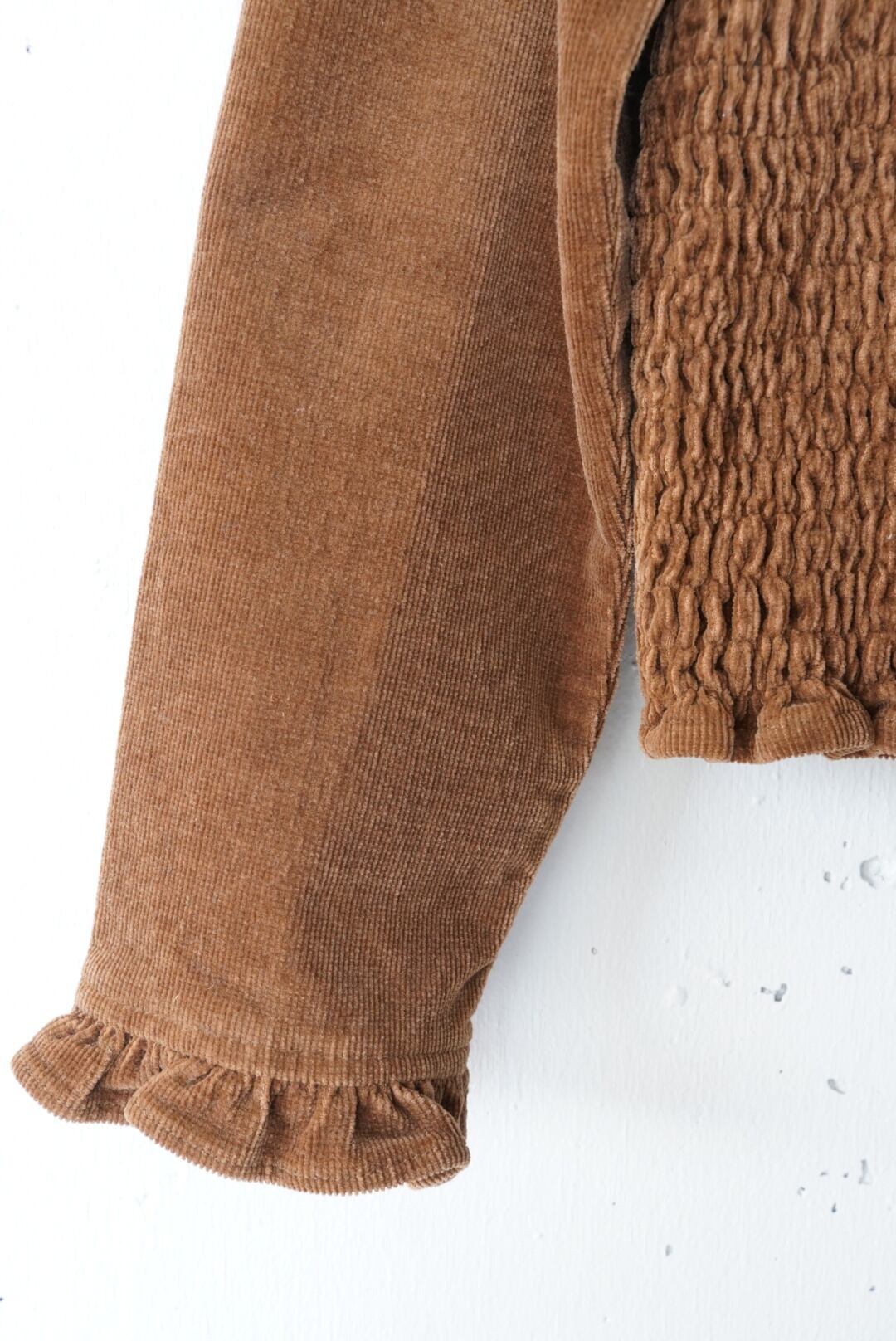 フロントに施されたたっぷりのギャザーと袖口と裾のフリルデザインが魅力的です。
