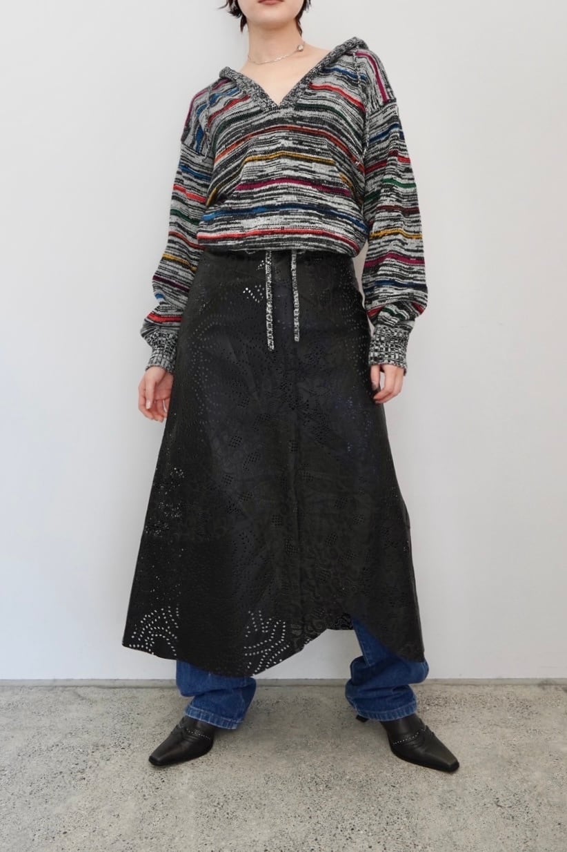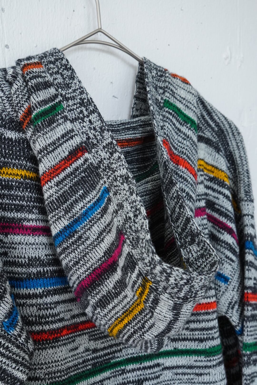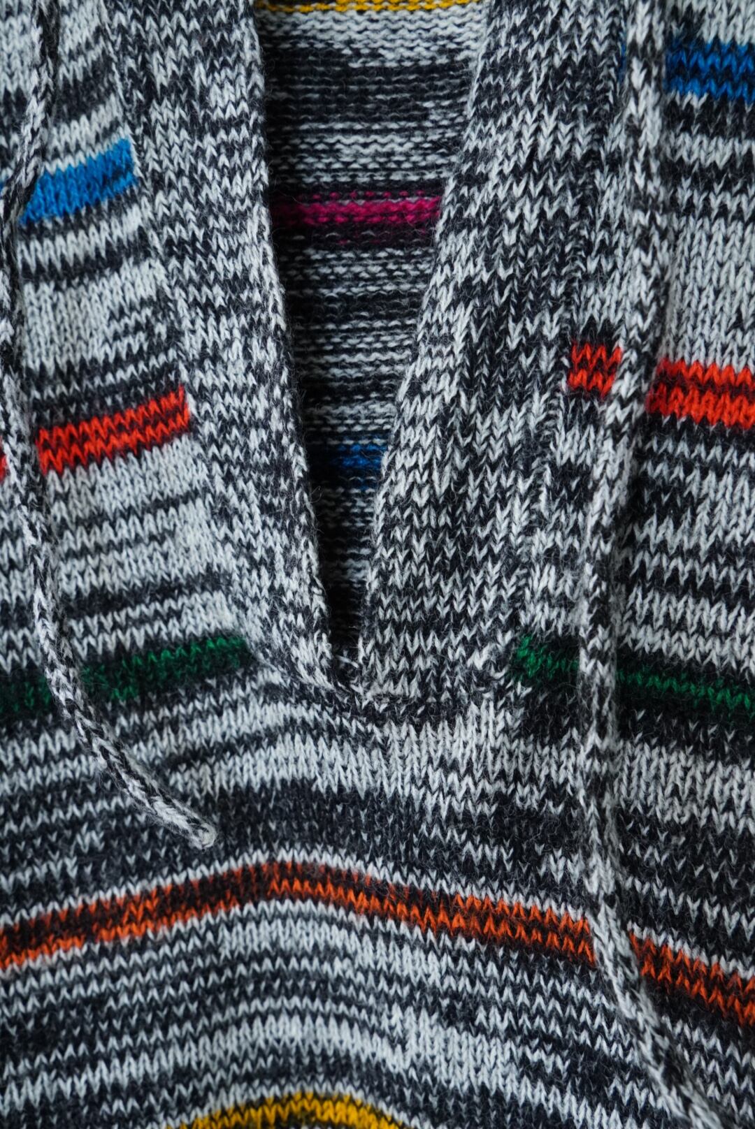 カジュアルな印象のニットパーカー。ザクっとV字にあいたフロントで抜け感も演出してくれます。
