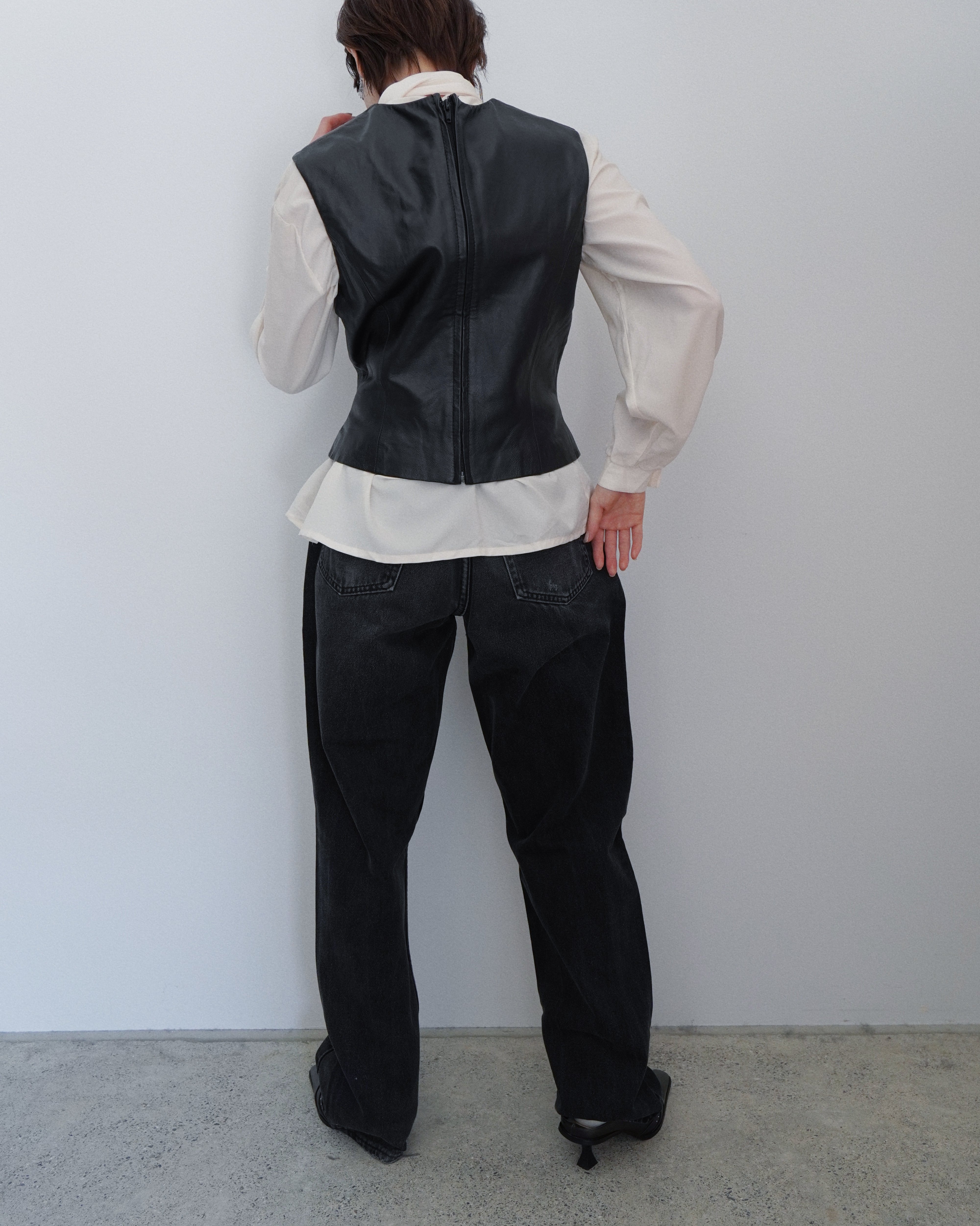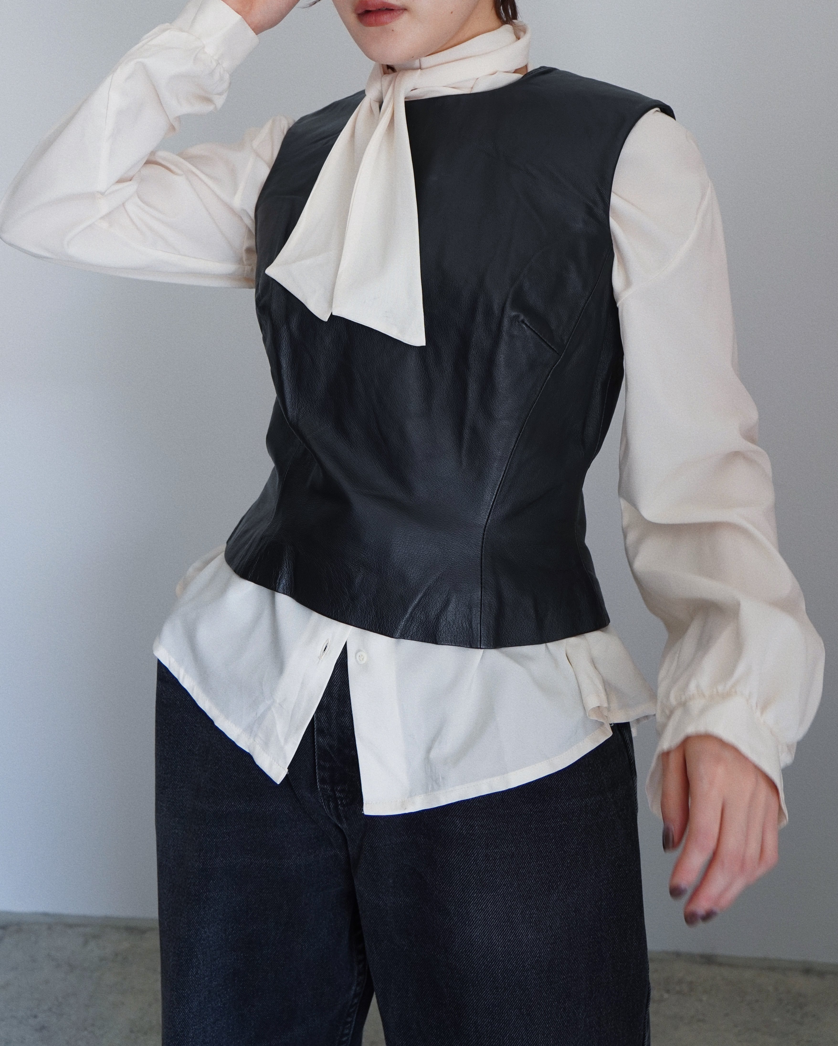丸みのあるウエストシェイプしたシルエットで、レザーアイテムながらも女性らしい印象が魅力的です。