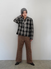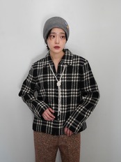 起毛感のある素材とモノトーンチェックがクラシカルな印象のジャケット。