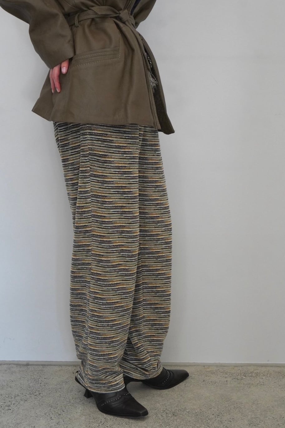 ニュアンスのあるカラーリングが目を惹くミッソーニのパンツ。