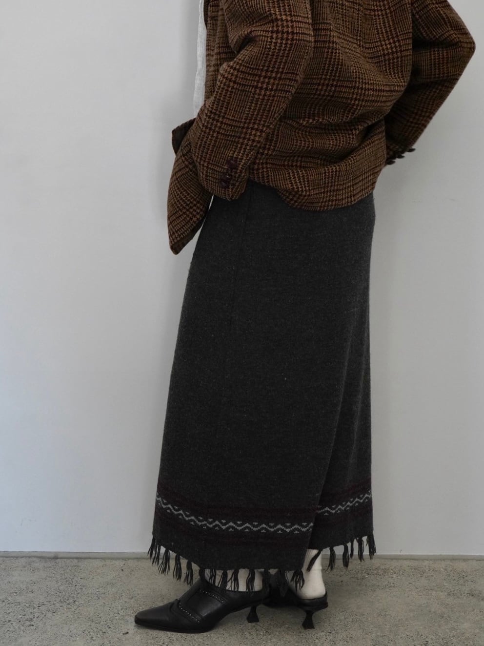 冬の装いに温かみを与える、ニットのロングスカート。