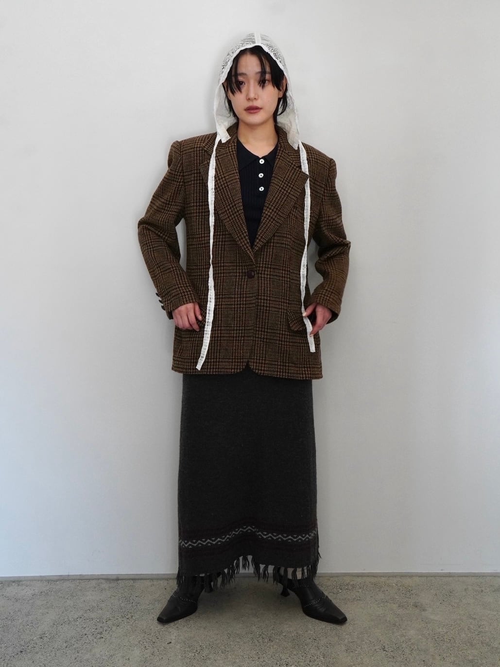 シンプルながら裾にあしらわれたフリンジがアクセントに。