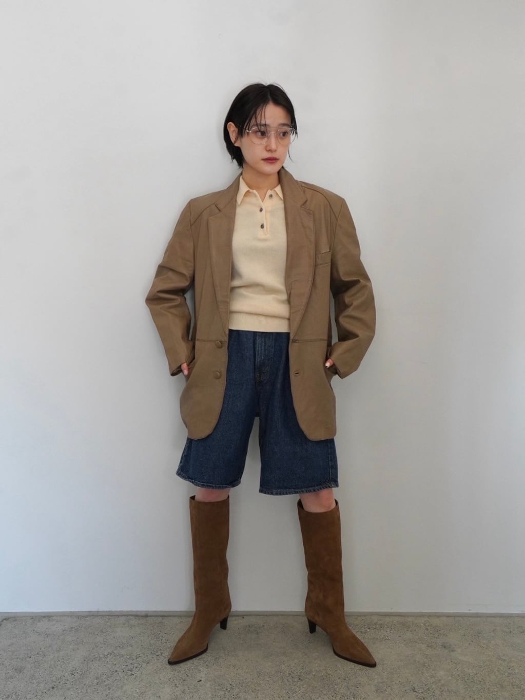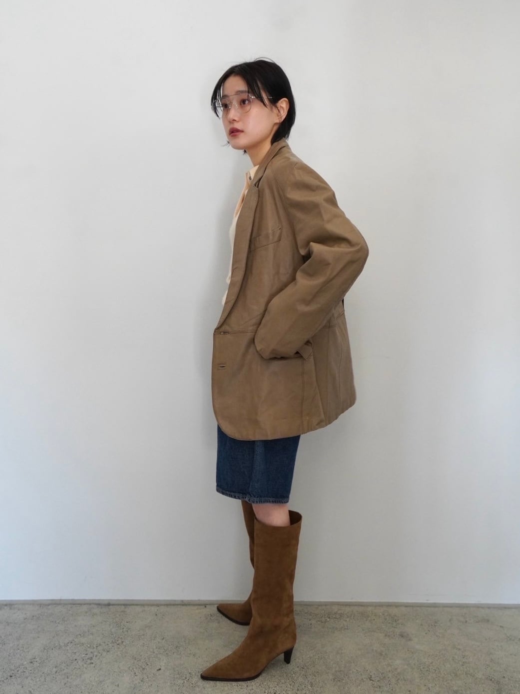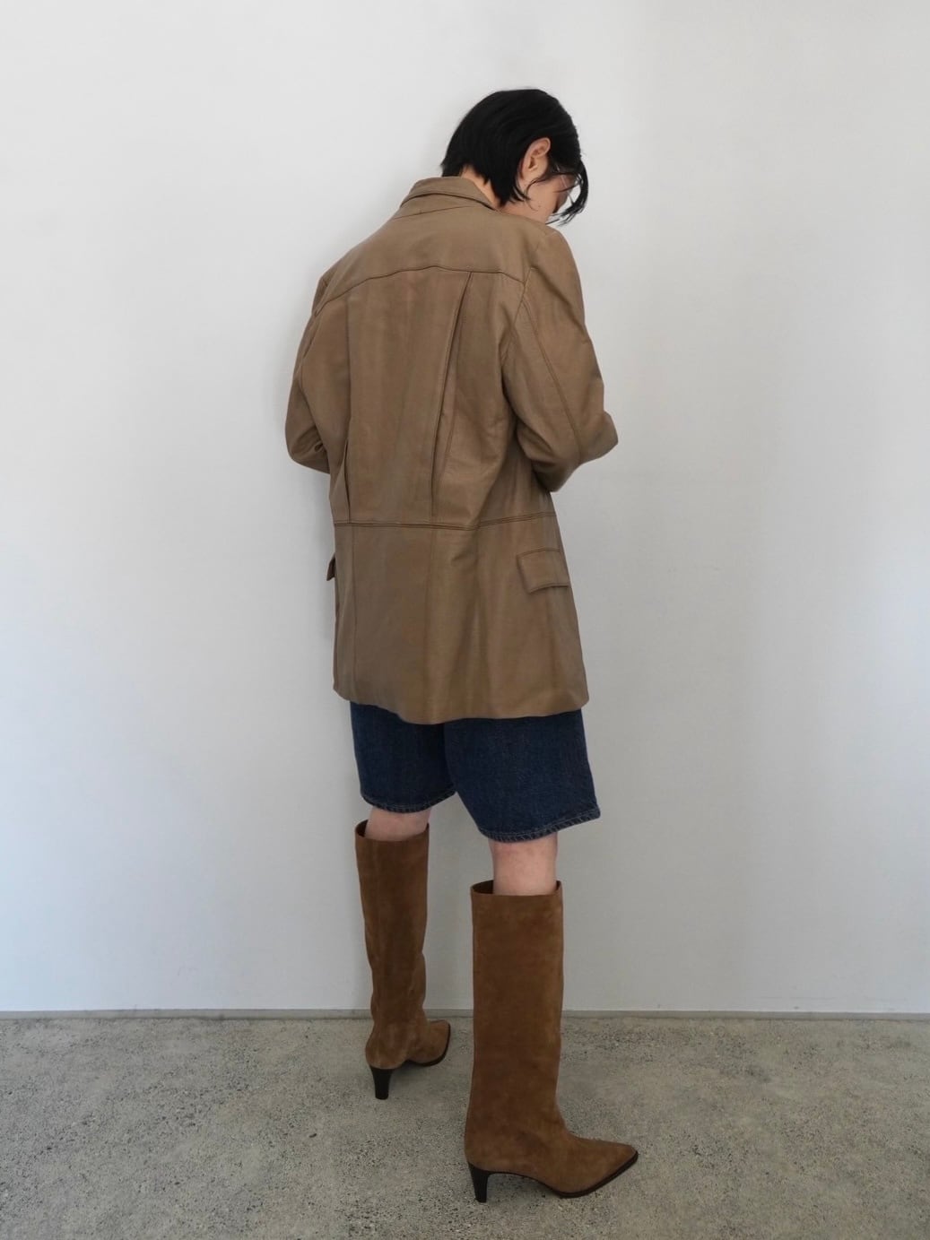 柔らかいベージュカラーで抜け感のあるレザージャケット。