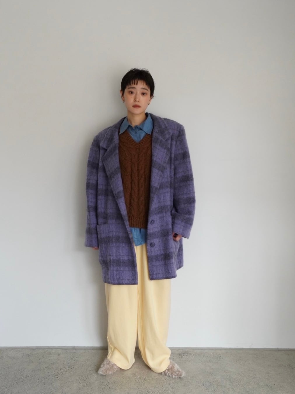 鮮やかなパープルチェックが魅力のオーセンティックなジャコット。
