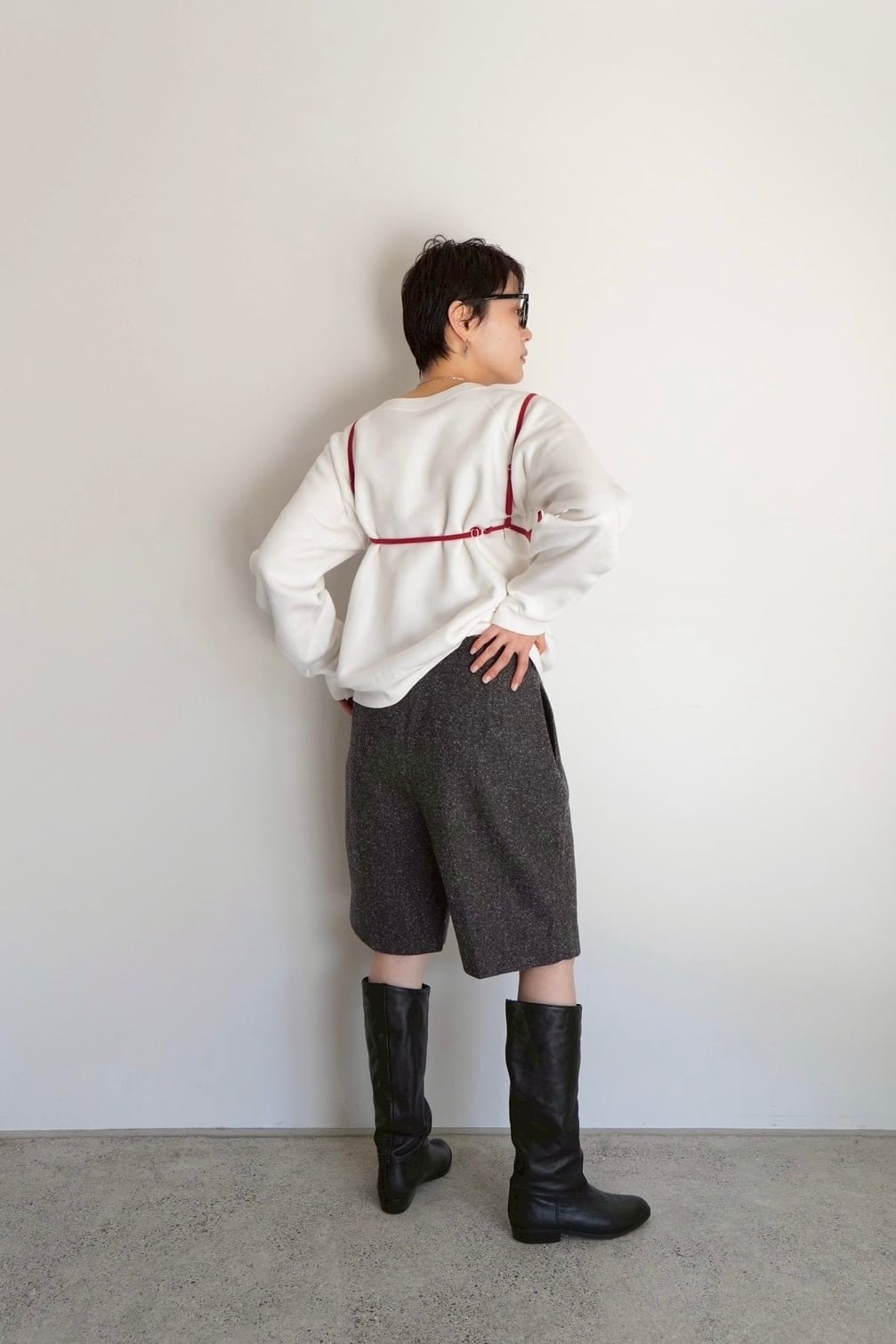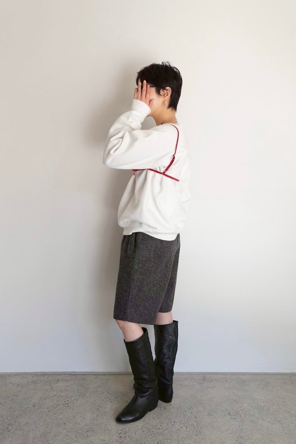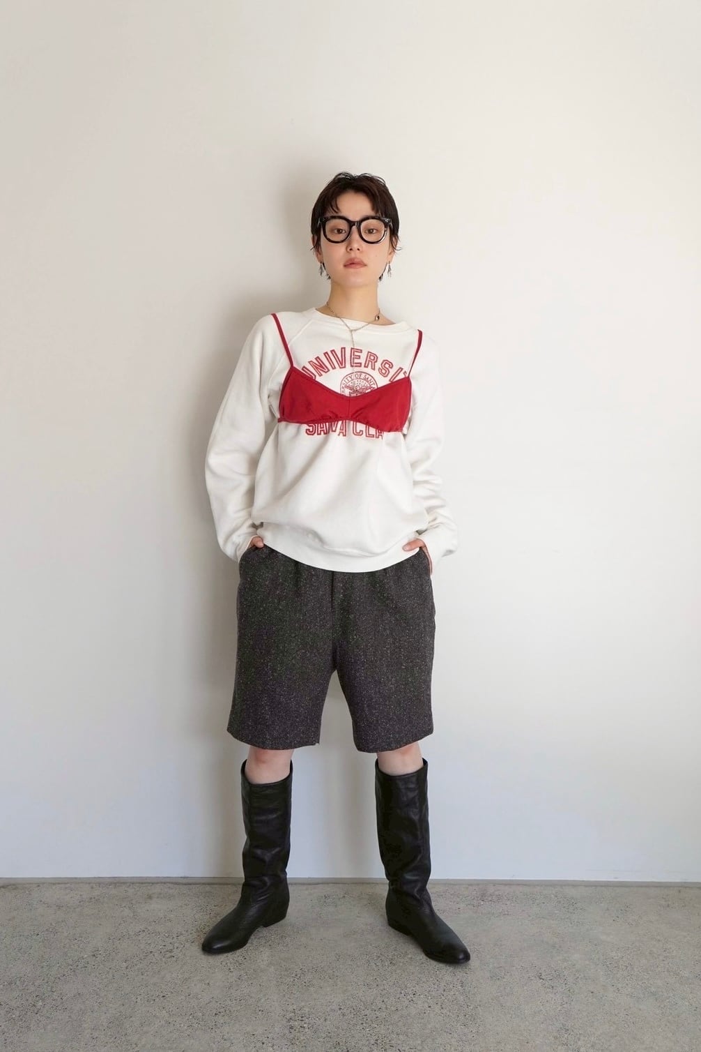 温かみのある生地感とシックなグレーカラーが冬らしいハーフパンツ。