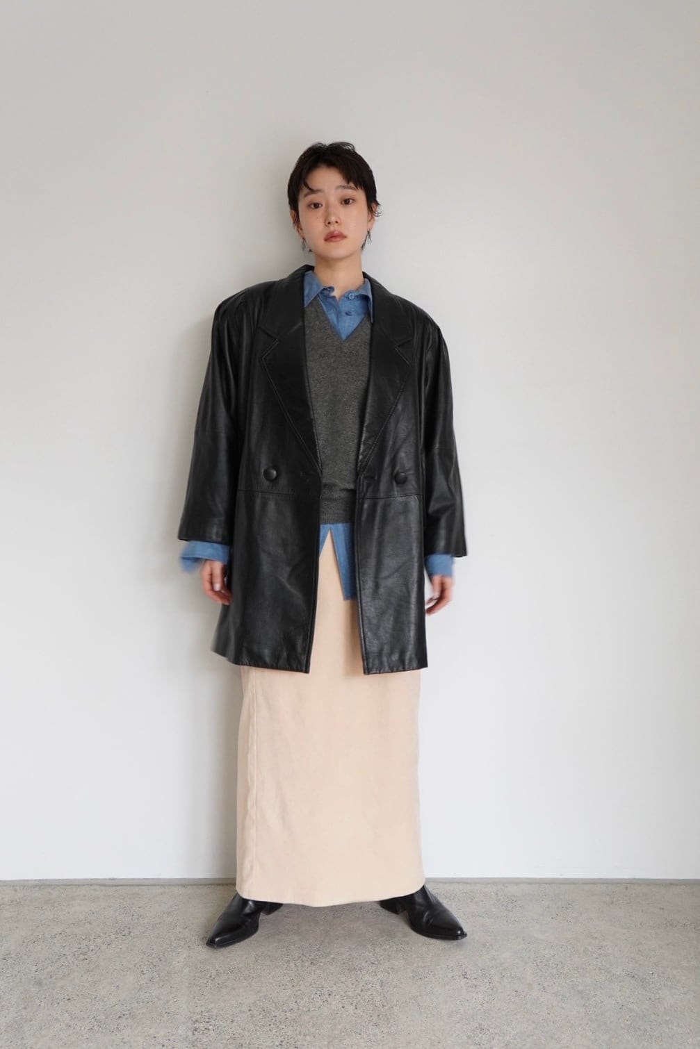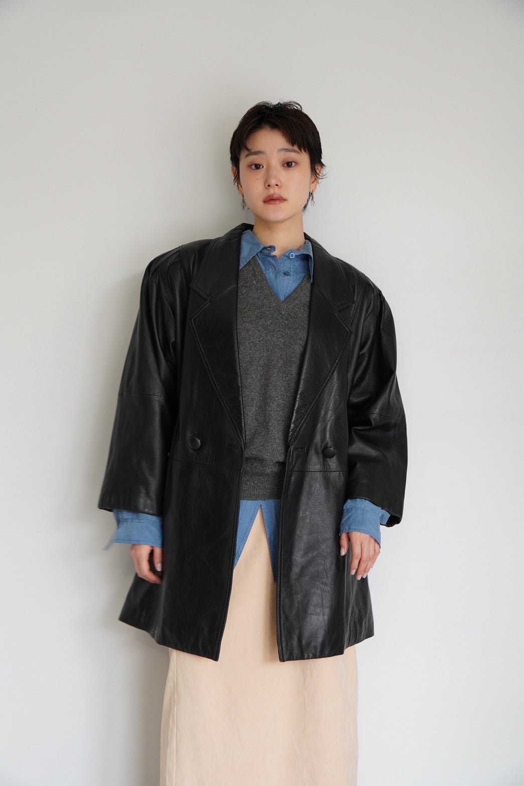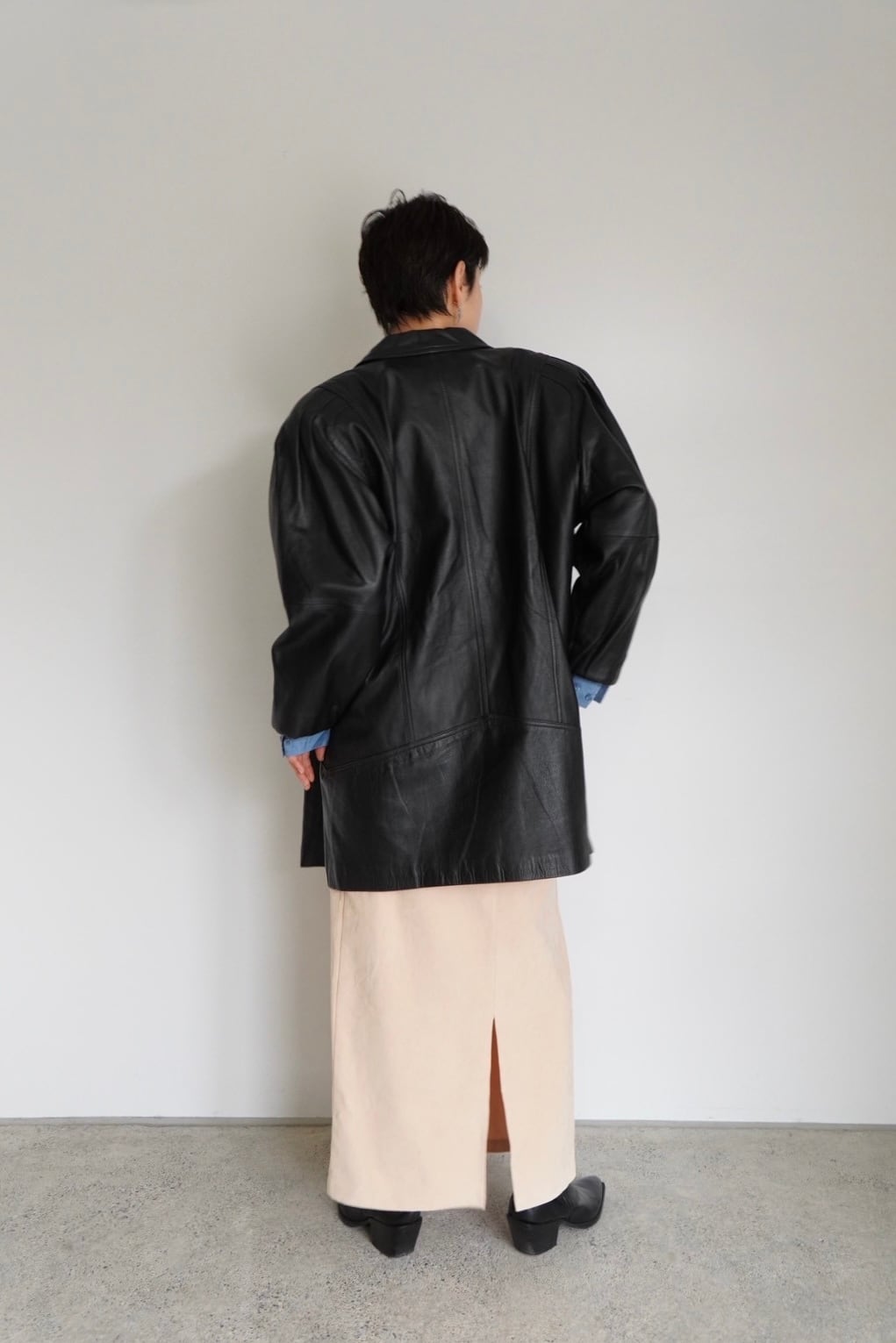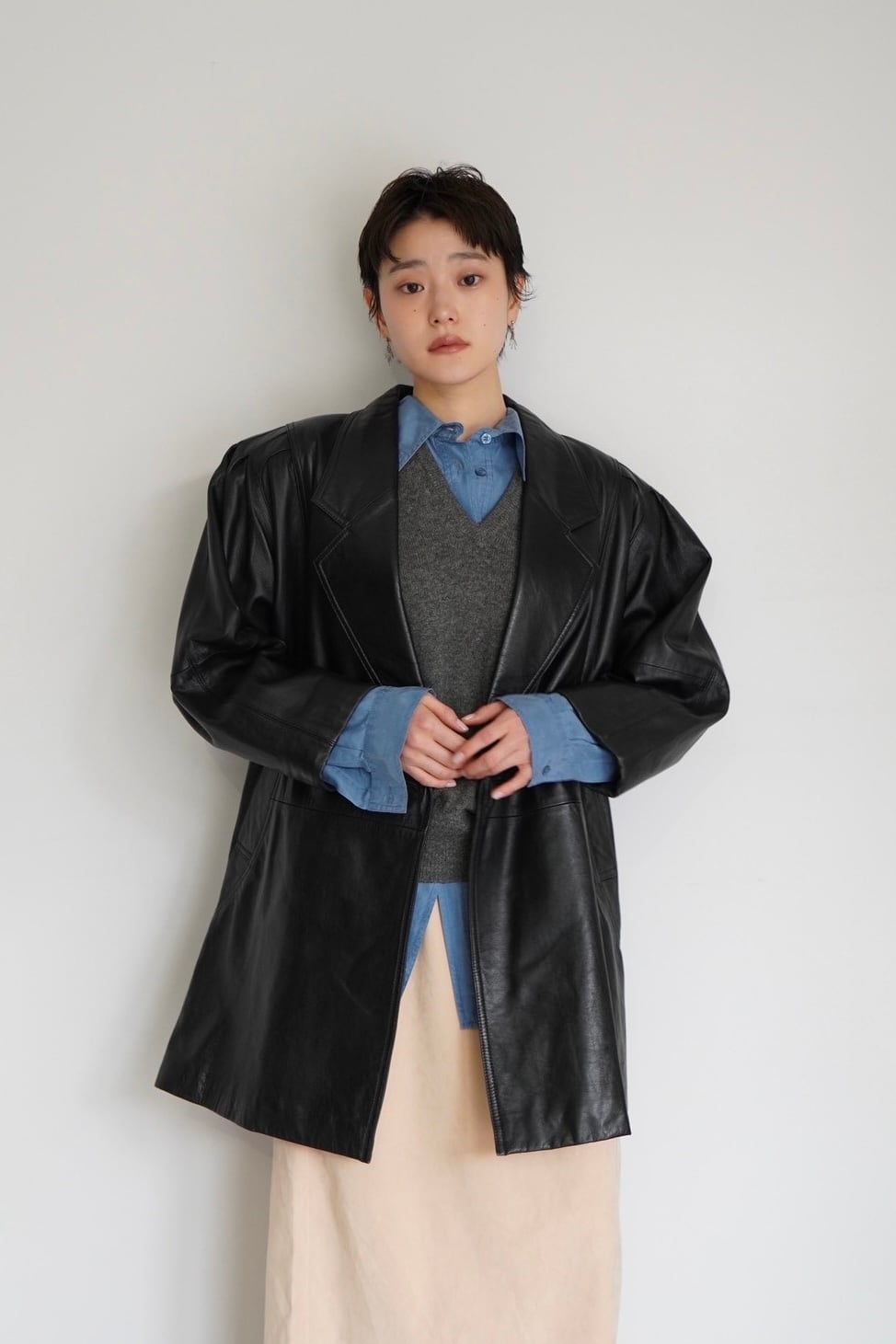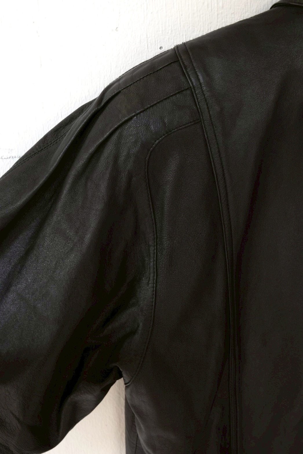 ビックシルエットに肩周りのデザインがポイントのレザージャケット。