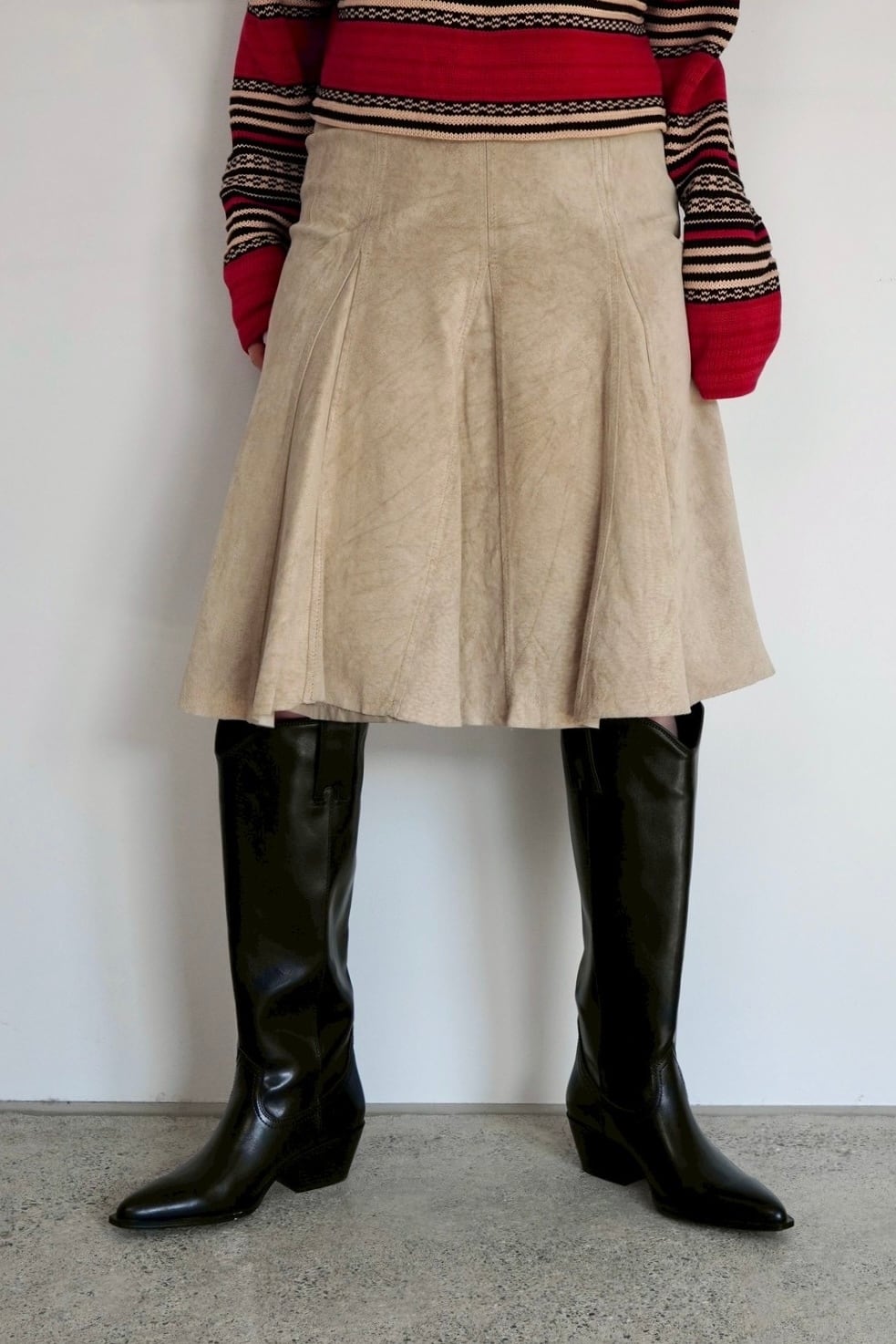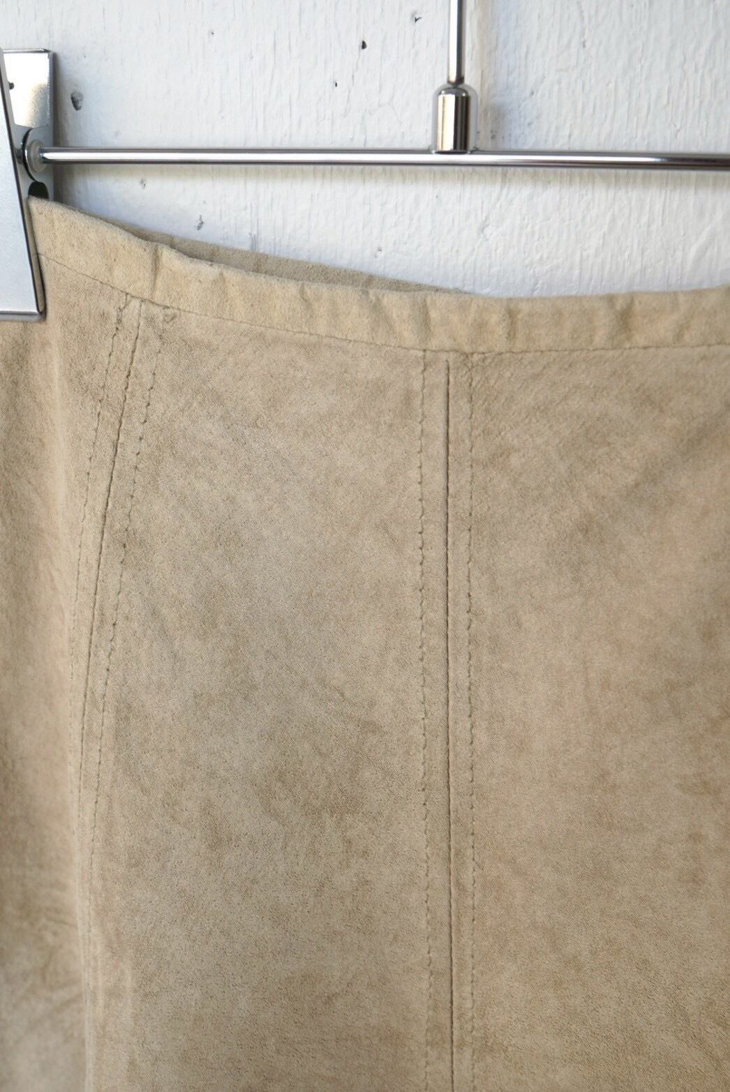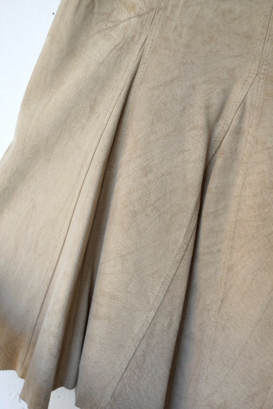 柔らかいベージュカラーとフレアのシルエットが上品な印象のスカート。
