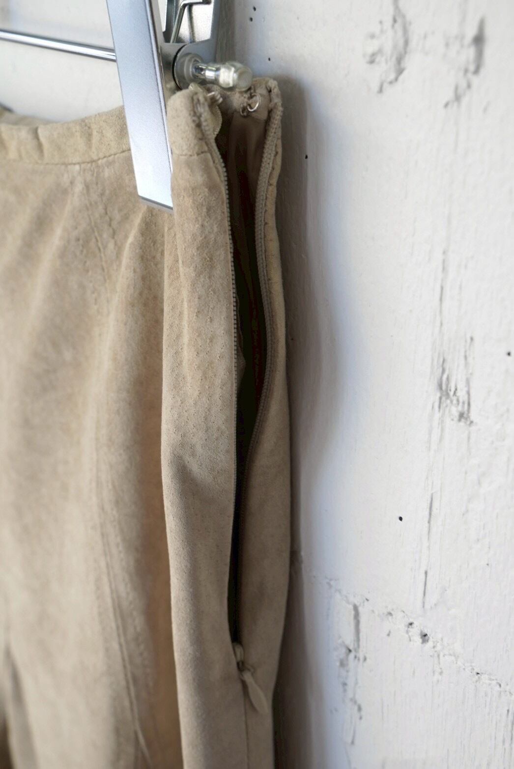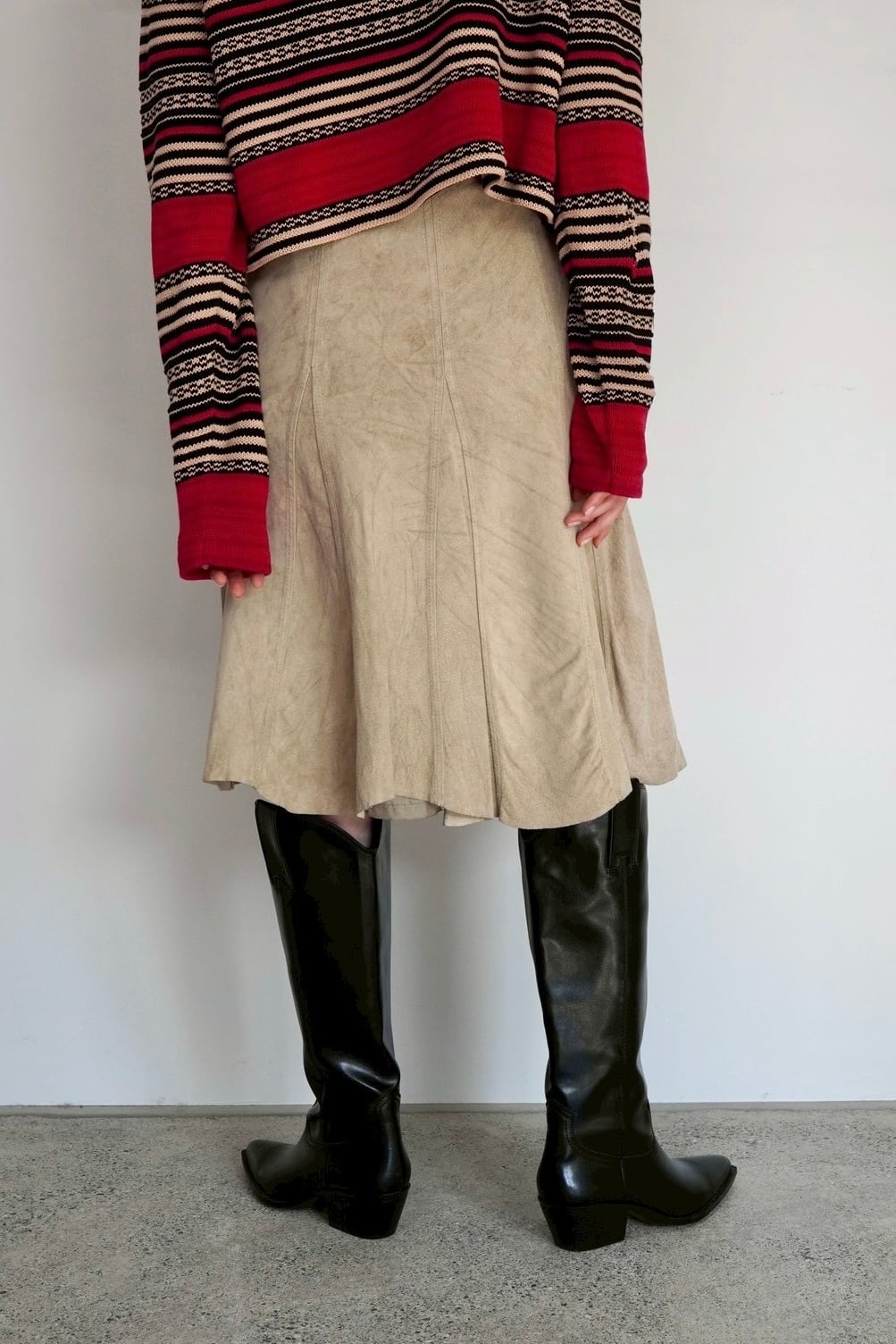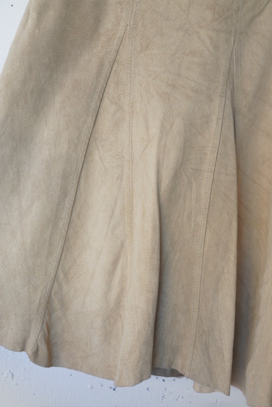 柔らかいベージュカラーとフレアのシルエットが上品な印象のスカート。